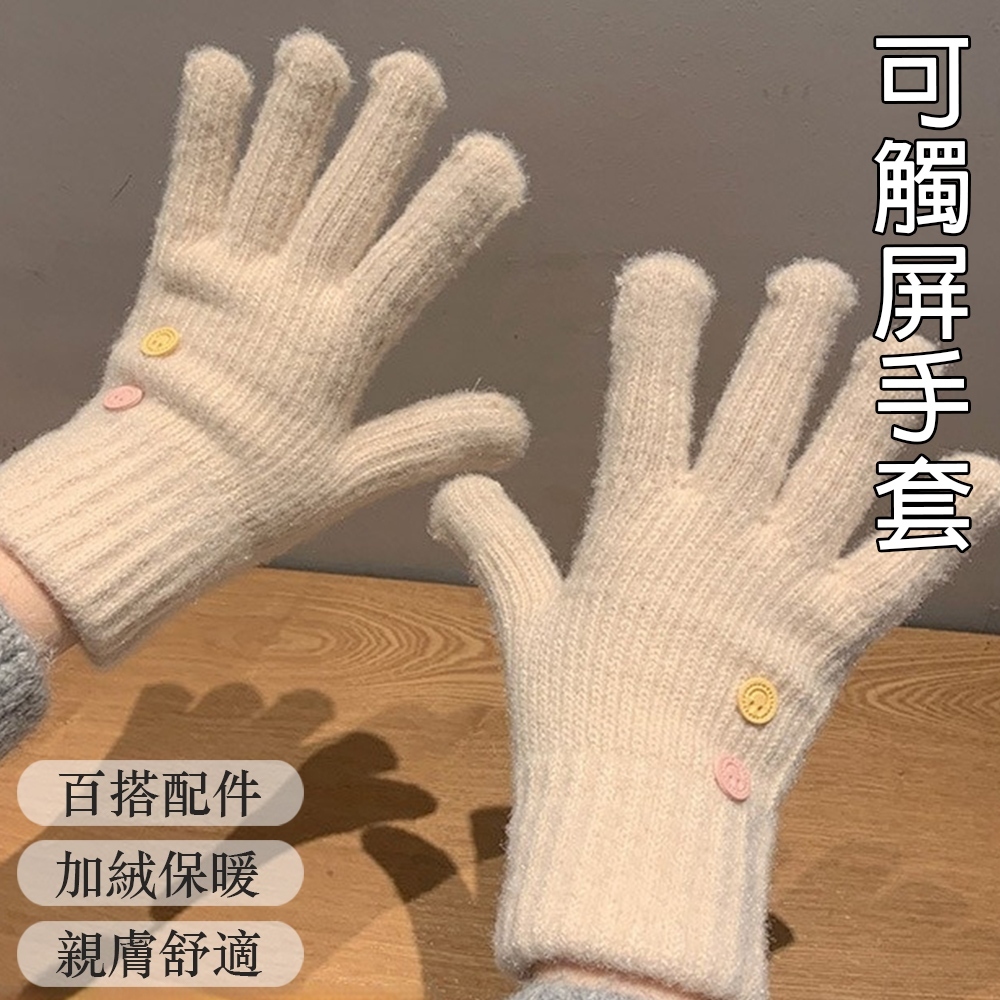 觸控手套 加絨 可觸屏手套 防寒手套 騎車保暖 針織手套 露指手套 保暖手套 秋冬穿搭 純色 韓國手套 情侶款 005