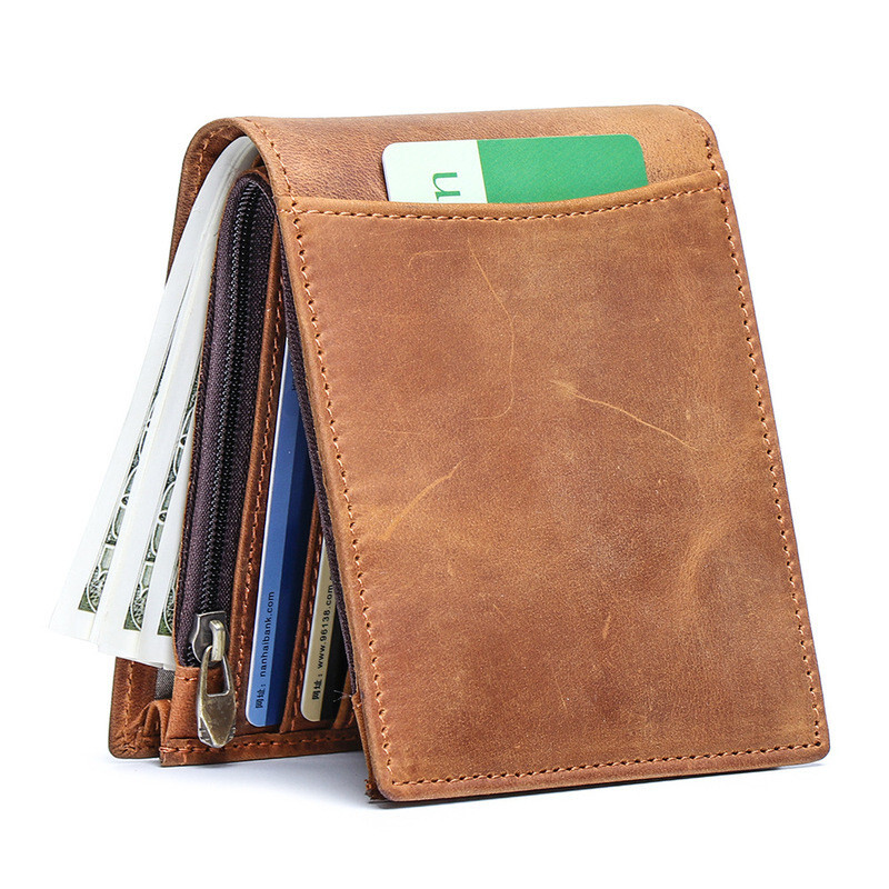 錢包 皮包 皮夾 男生皮夾 短夾 二折錢包 真皮錢包 牛皮皮夾 短款錢包 防盜刷卡夾 瘋馬皮 多卡位 頭層牛皮 166