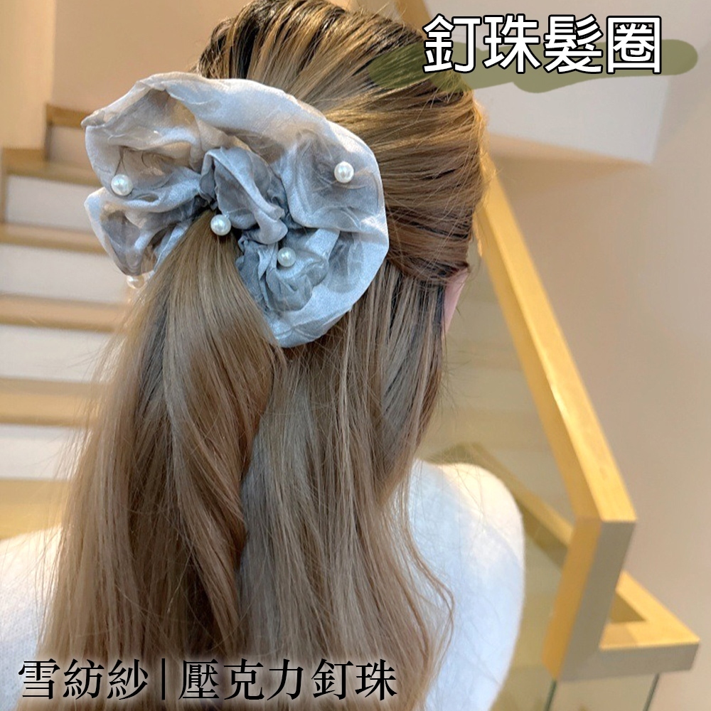 髮圈 髮飾 大腸圈 飾品 釘珠髮圈 雪紡 韓國髮圈 褶皺 氣質 低馬尾 綁頭髮 女生飾品 女生髮飾 高級感 網紗 033
