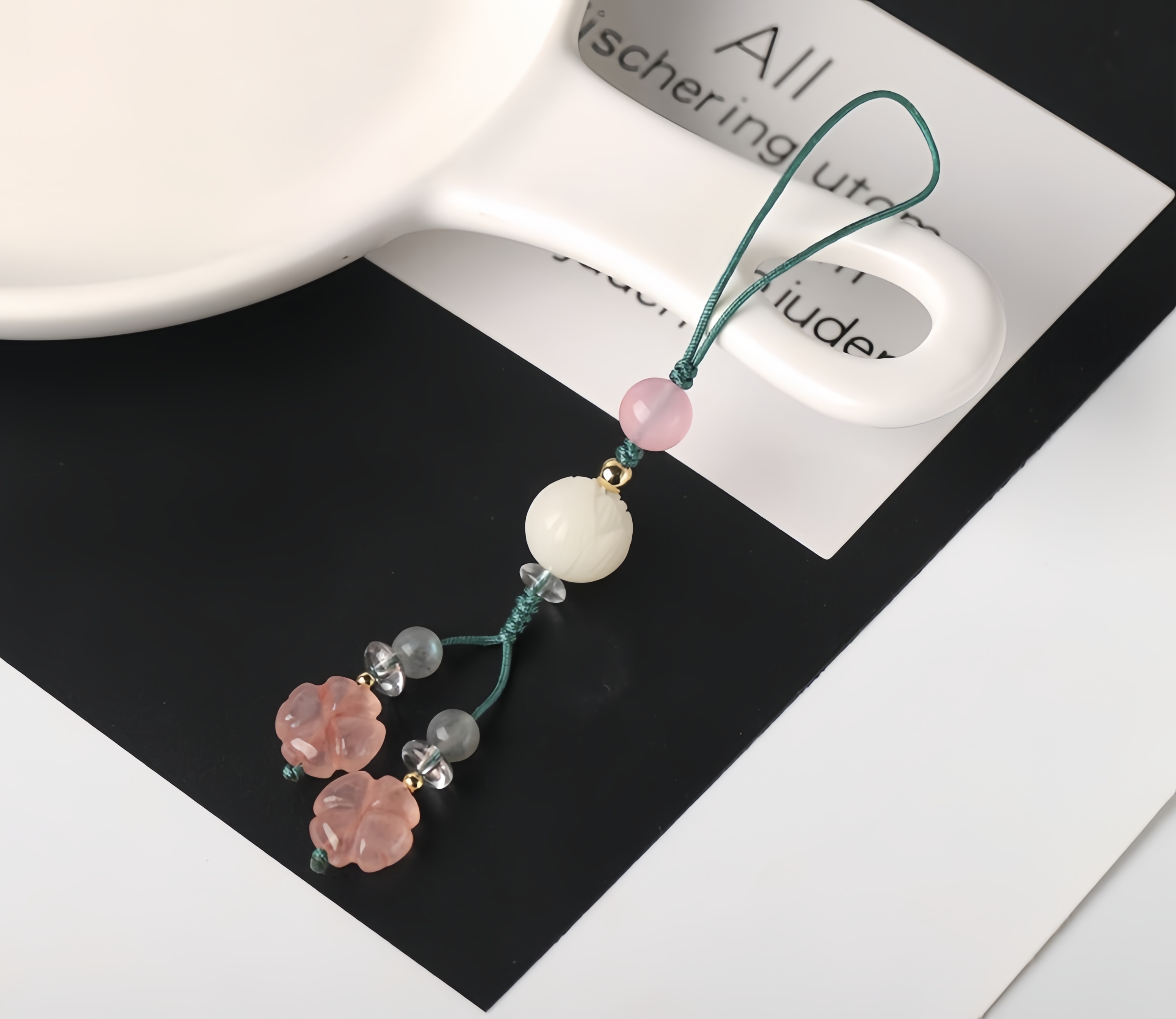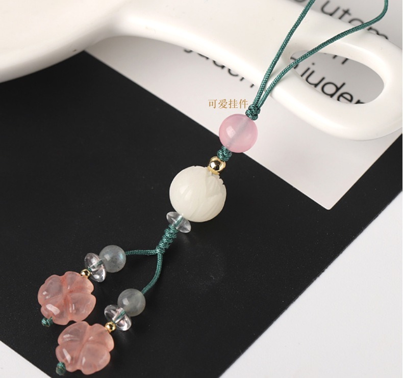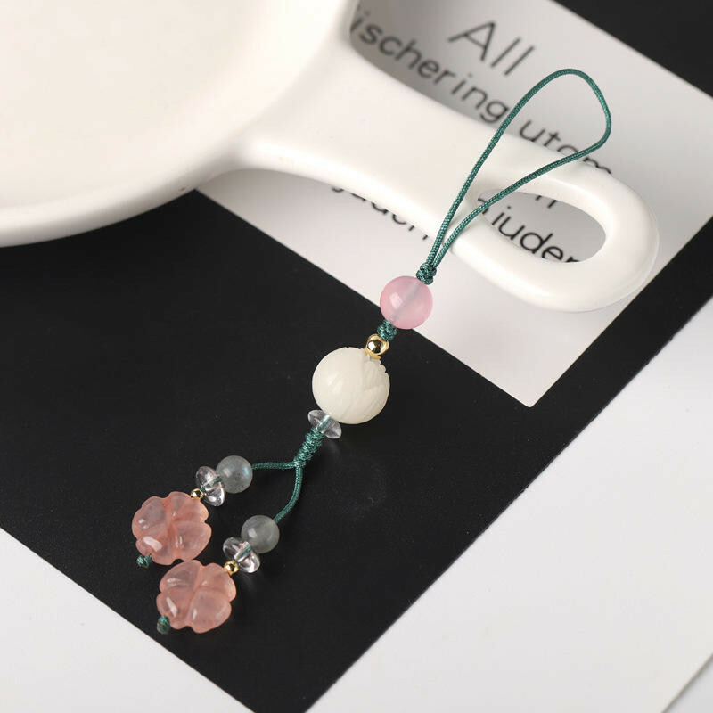掛件 掛飾 吊飾 粉晶吊飾 四葉草飾品 手機吊飾 百搭飾品 可愛吊飾 包包吊飾 招桃花 保平安 送女生 生日禮物 009