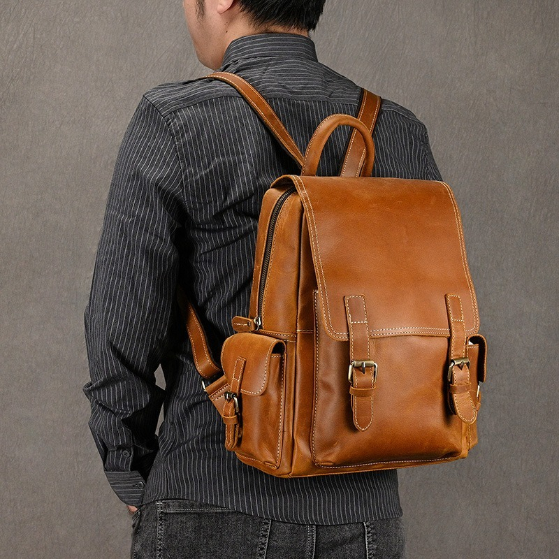英倫復古背包 歐美背包 大容量後背包 牛皮後背包 真皮背包 復古書包 真皮旅行背包 文青背包 送男生 生日禮物 026