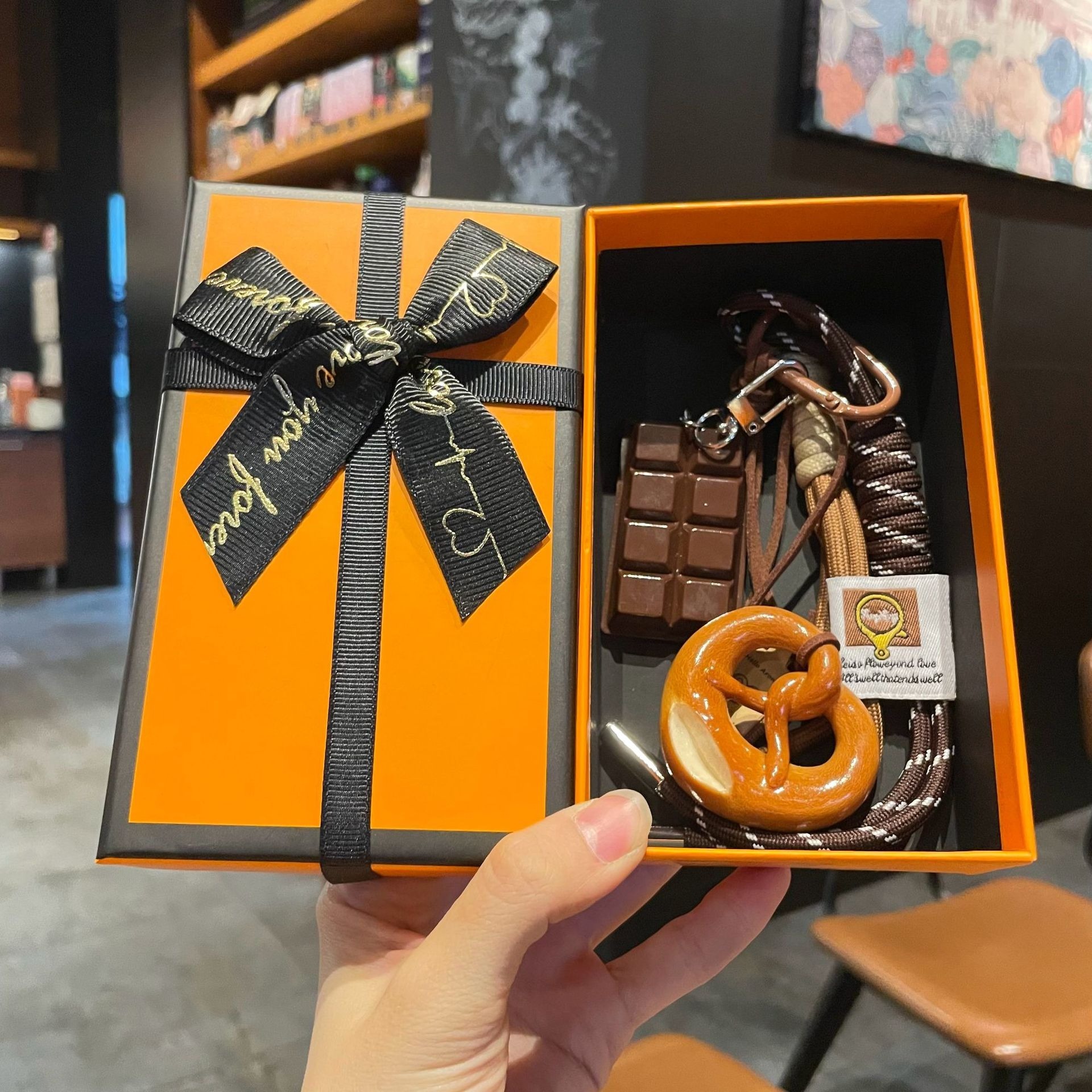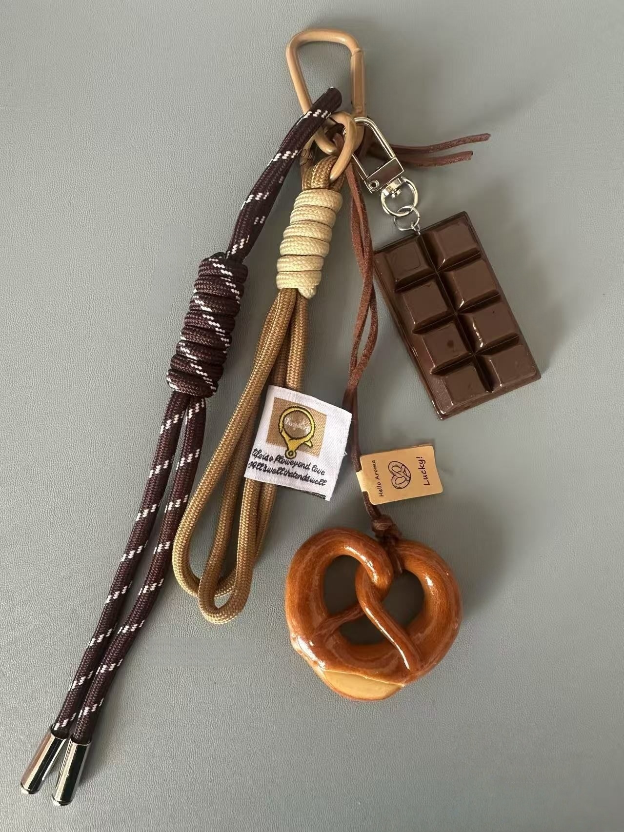 👜尺寸:牛角-5.5*3.5cm,笑臉-5.5*5.5cm,貝果-5*5cm,扭結-5.5*5cm,巧克力-5.5*3.5cm