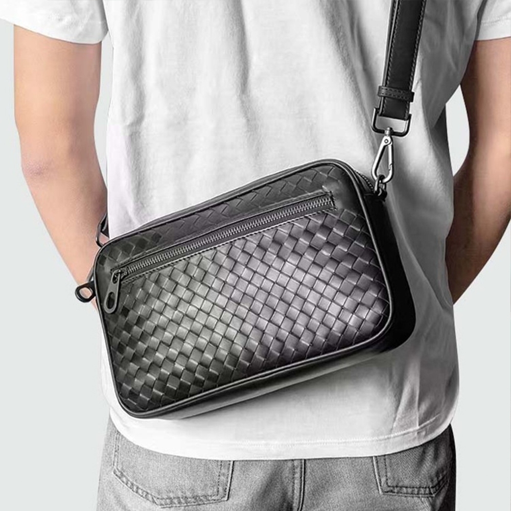 包包 側背包 大方包 編織包包 真皮包包 牛皮編織包 牛皮斜背包 編織方包 手工編織包 黑色包包 休閒皮包 禮物 052