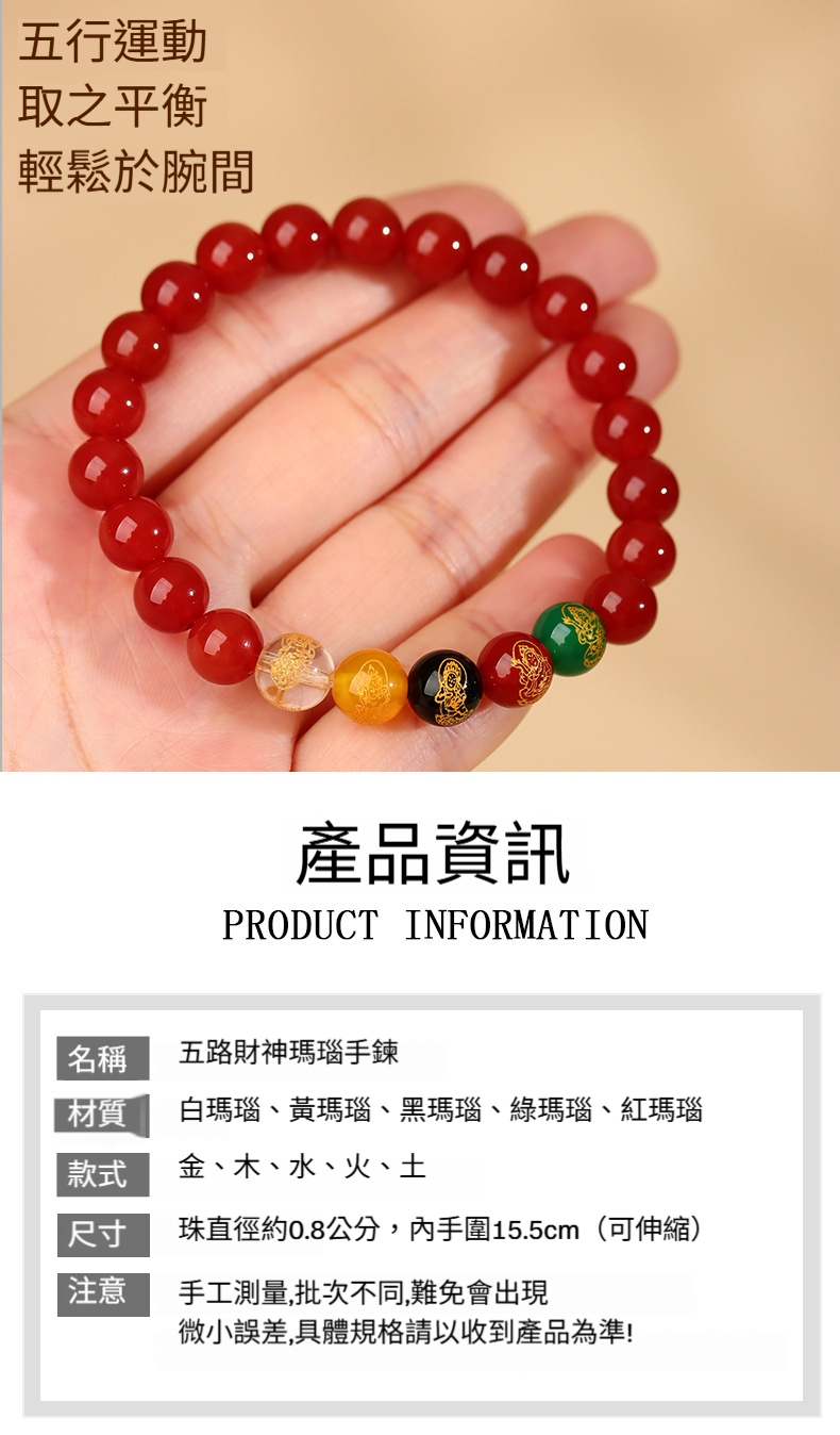 ✨ 商品尺吋:珠直徑約0.8公分,內手圍15.5cm(可伸縮)