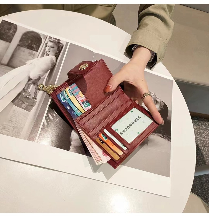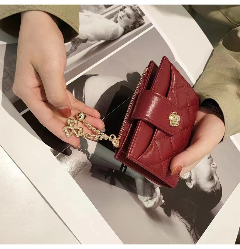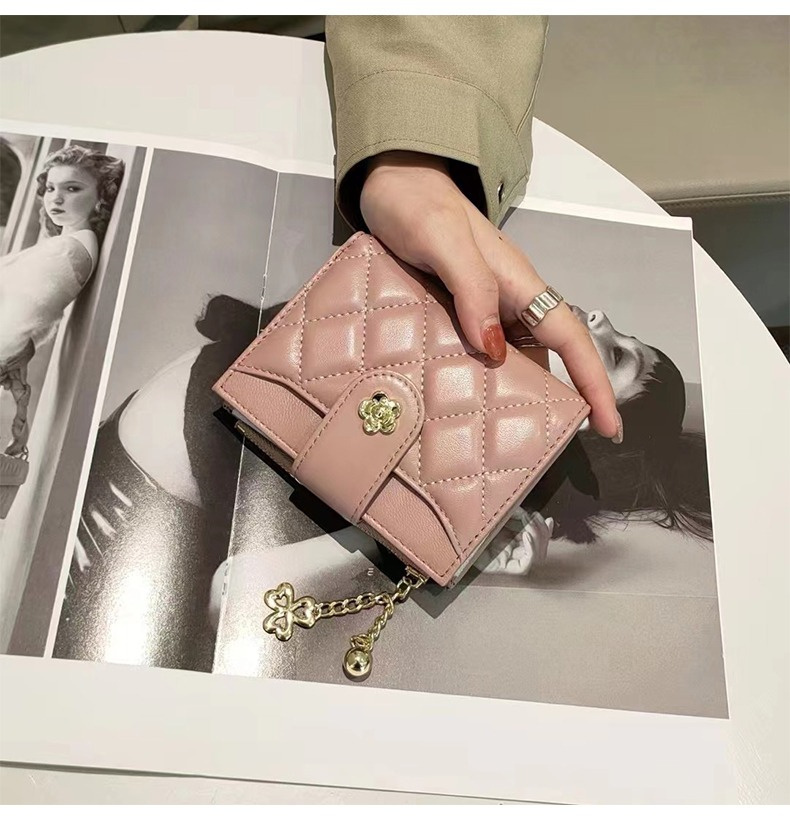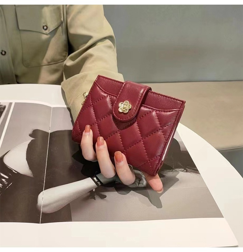 女用皮夾 卡夾零錢包 錢包 短夾 零錢包 菱格短夾 小花錢包 多卡位短夾 折疊錢包 真皮拉鍊錢包 歐美錢包 092