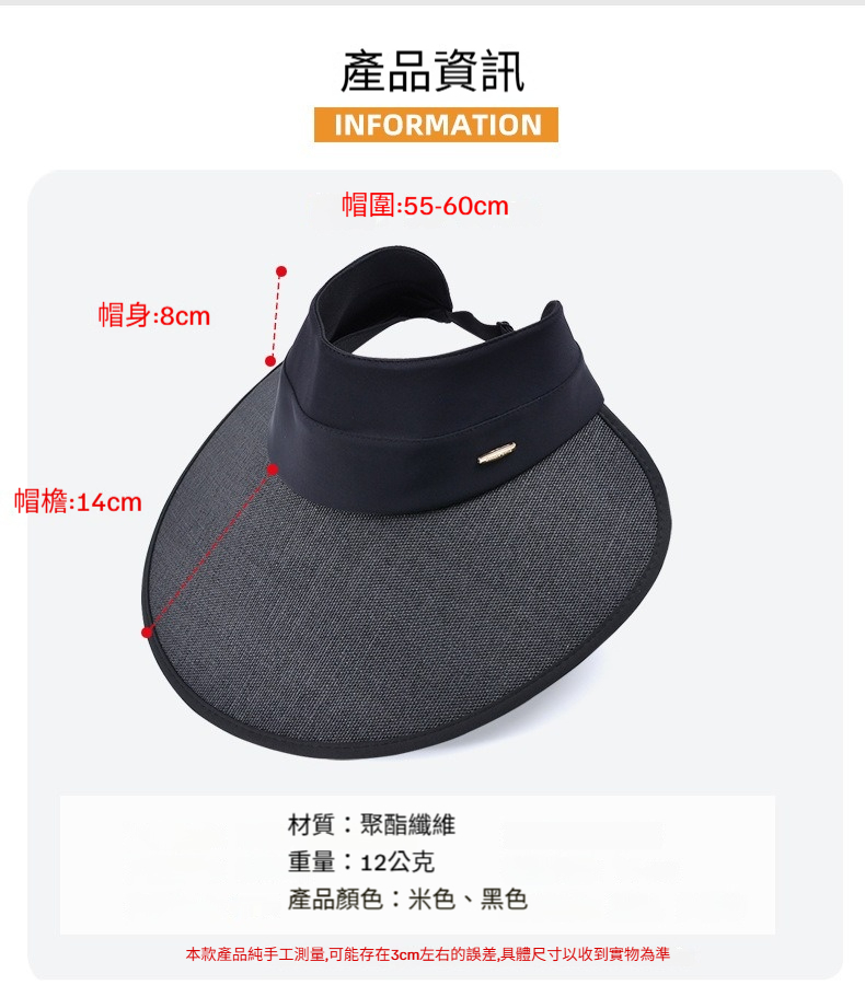 💗賣場的庫存都是準確的!!可以直接購買💗💗台灣現貨.保證下單後24小時內寄出💗附防塵袋、透明包裝袋,送人有面子✨👜尺寸:帽圍55~60公分 帽深8公分 帽檐:14CM👜材質:聚酯纖維👜重量:12公克