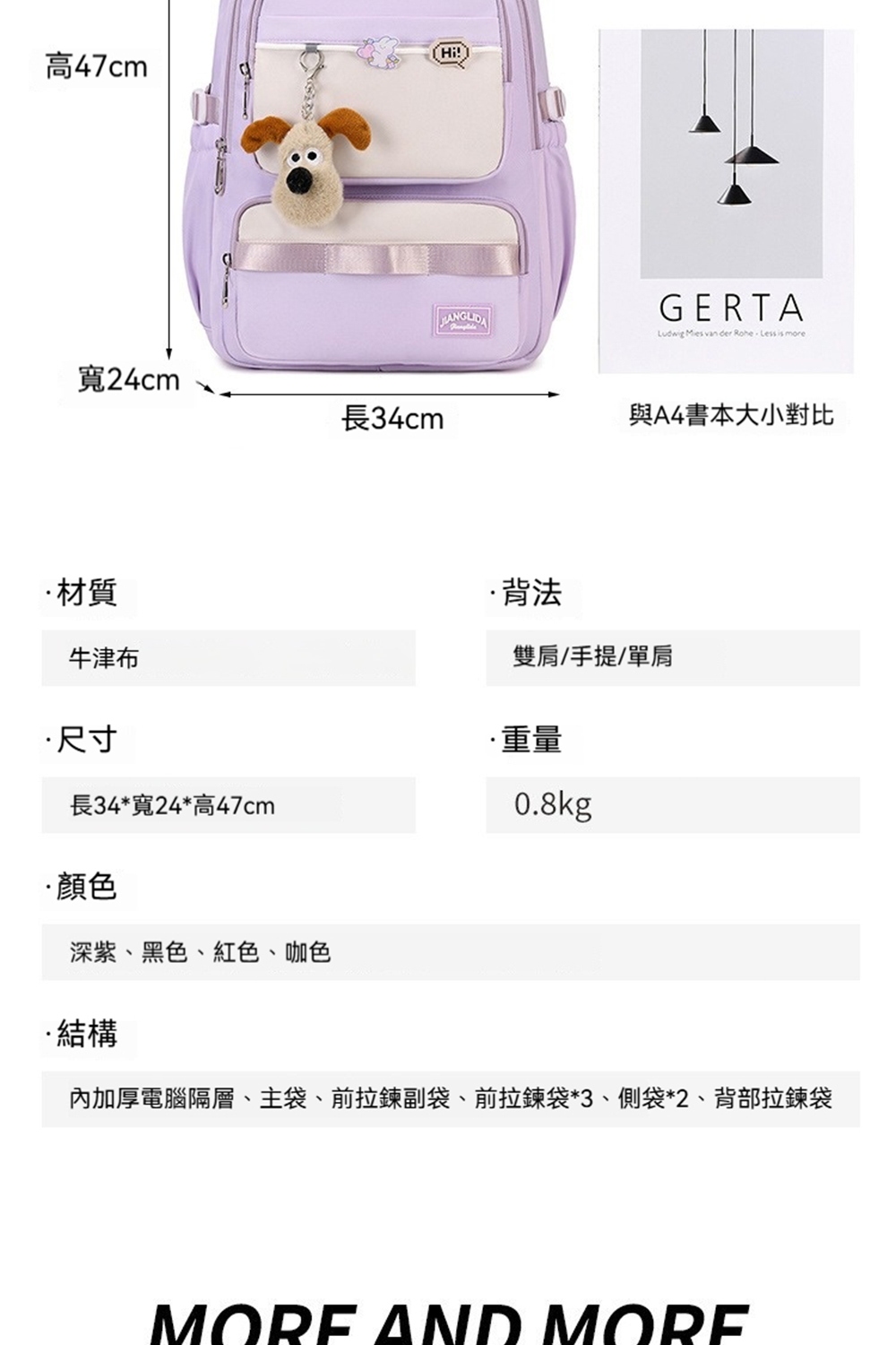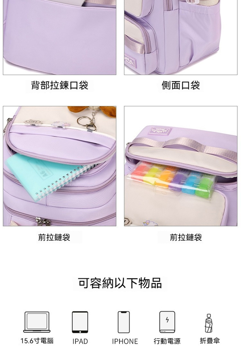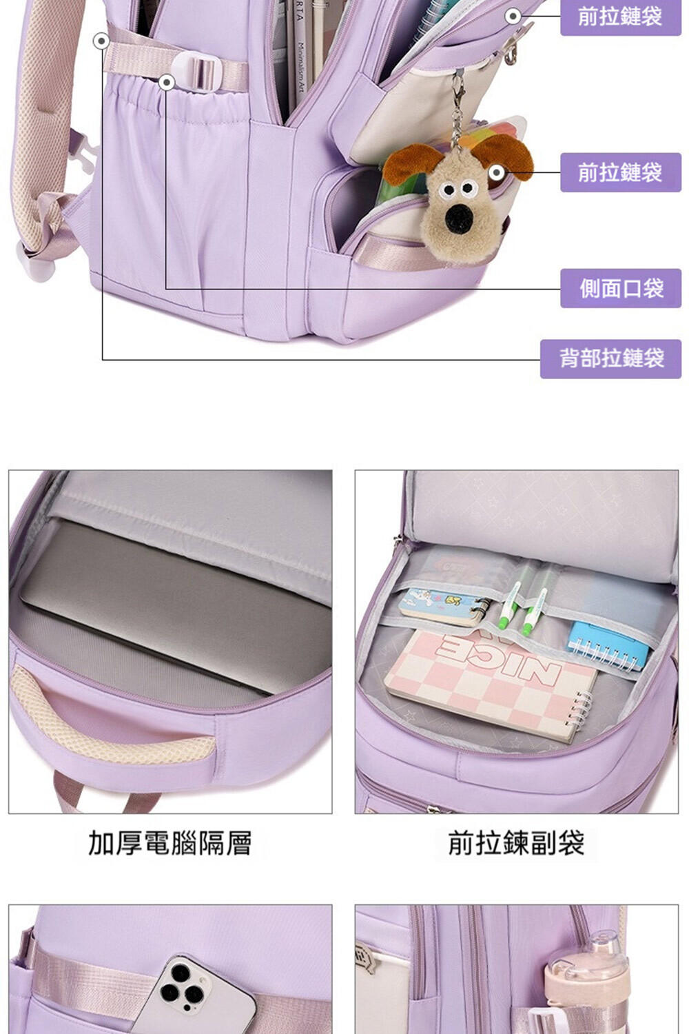 👜結構:內加厚電腦隔層、主袋、前拉鍊副袋、前拉鍊袋*3、側袋*2、背部拉鍊袋