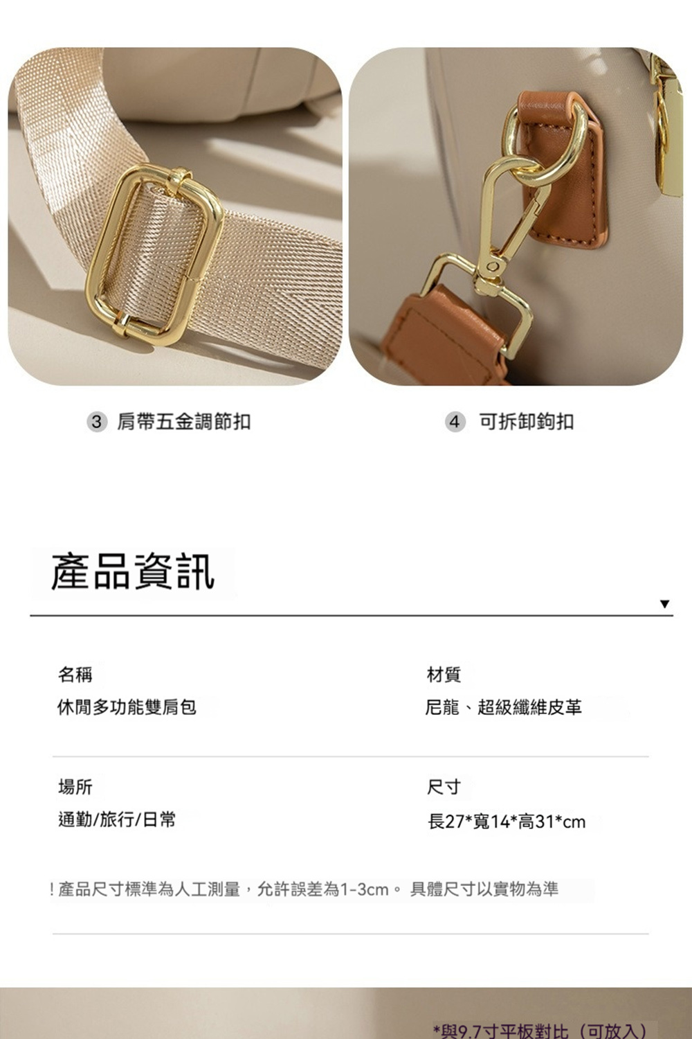 👜容量:可放手機、iPad、長夾及其他隨身物品