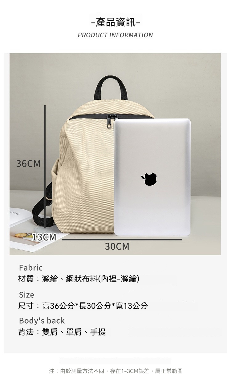 👜容量:可放A4、13.3吋筆電、iPad、長夾及其他隨身物品