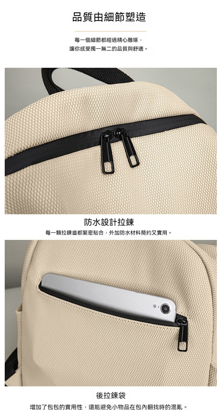 👜結構:主袋、後側拉鍊袋、側袋*2、電腦插袋、內貼袋*4、內側袋