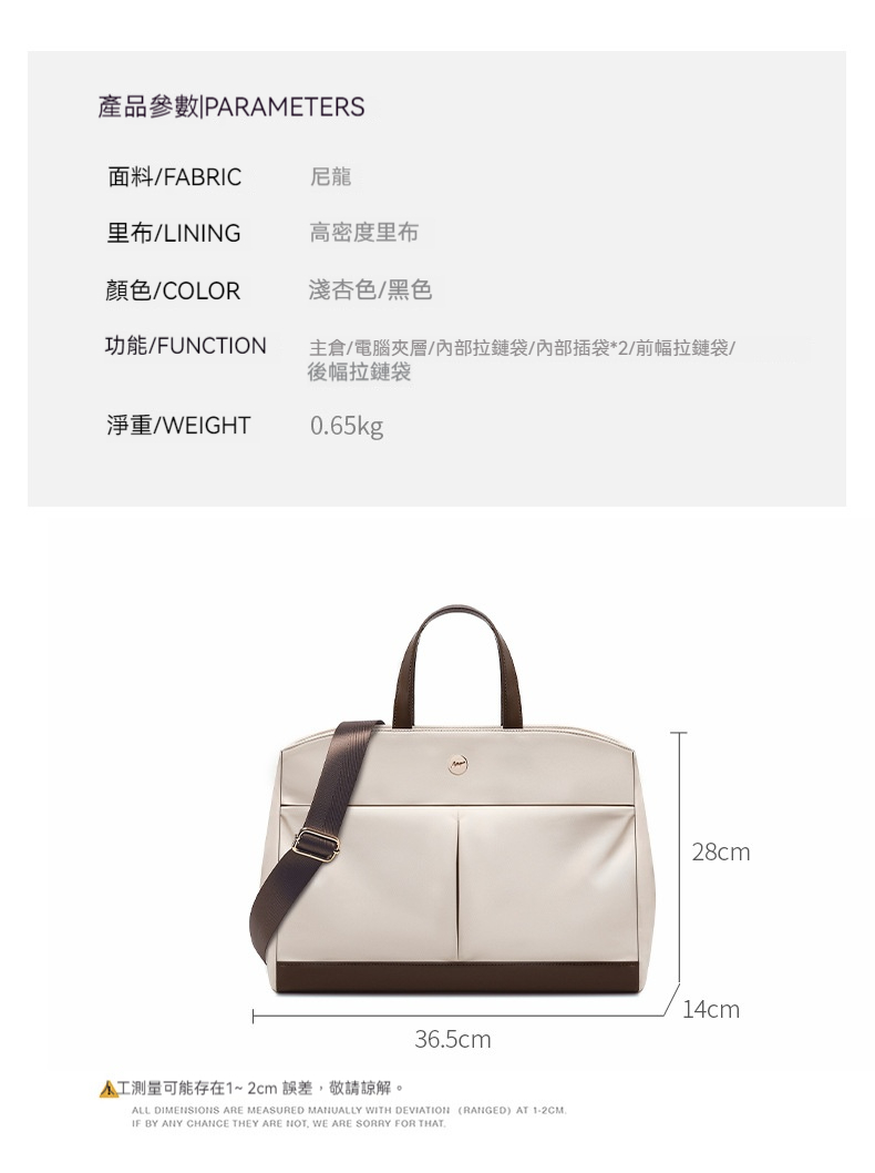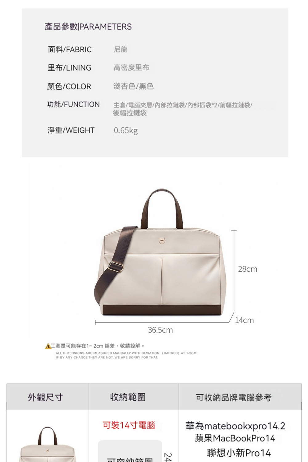 👜容量:可放A4、14吋筆電、長夾及其他隨身物品
