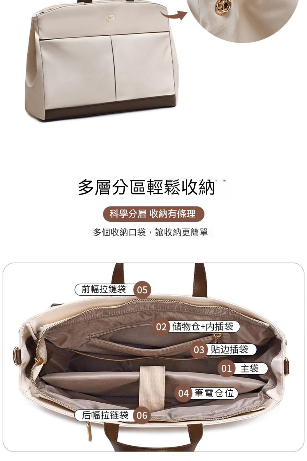 👜結構:主袋、電器緩衝層、內貼袋*2、拉鍊內貼袋、前幅拉鍊袋、後幅拉鍊袋