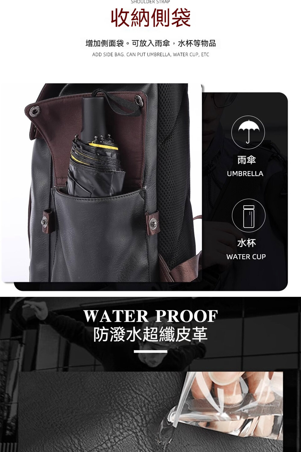 👜結構:主袋、內貼袋*2、電器緩衝層、前置拉鍊袋、兩側口蓋插袋、後幅拉練貼袋、行李桿插帶