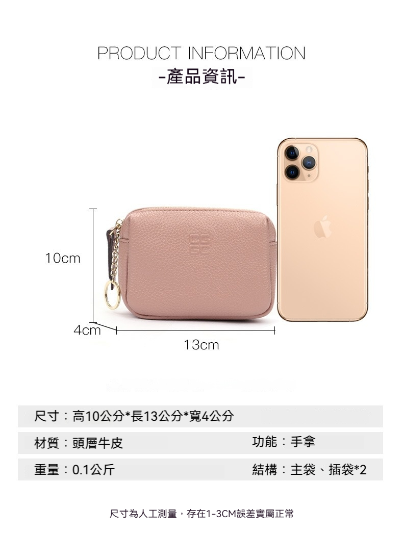 附防塵袋、透明包裝袋,送人有面子✨ 👜尺寸:高10公分*長13公分*寬4公分 👜開口:拉鍊 👜材質:頭層牛皮 👜功能:手拿 👜重量:0.1公斤 👜容量:可放零錢、證件、鈔票、口紅及其他隨身物品 👜結構:主袋、插袋*2 ------------------------------------------------ 💗賣場的庫存都是準確的!!可以直接購買💗 💗台灣現貨.保證下單後24小時內寄出💗