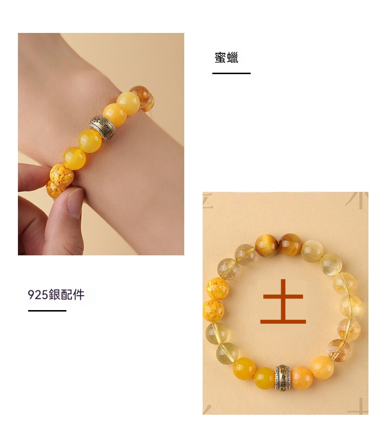 ✨ 材質:黃水晶、金髮晶、蜜蠟、S925銀(12層電鍍工藝,不易氧化、不易過敏和掉色)
