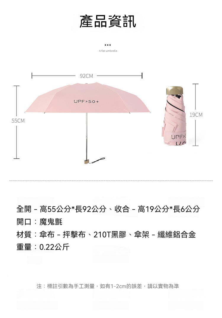 👜材質:傘布 - 抨擊布、210T黑膠、傘架 - 纖維鋁合金