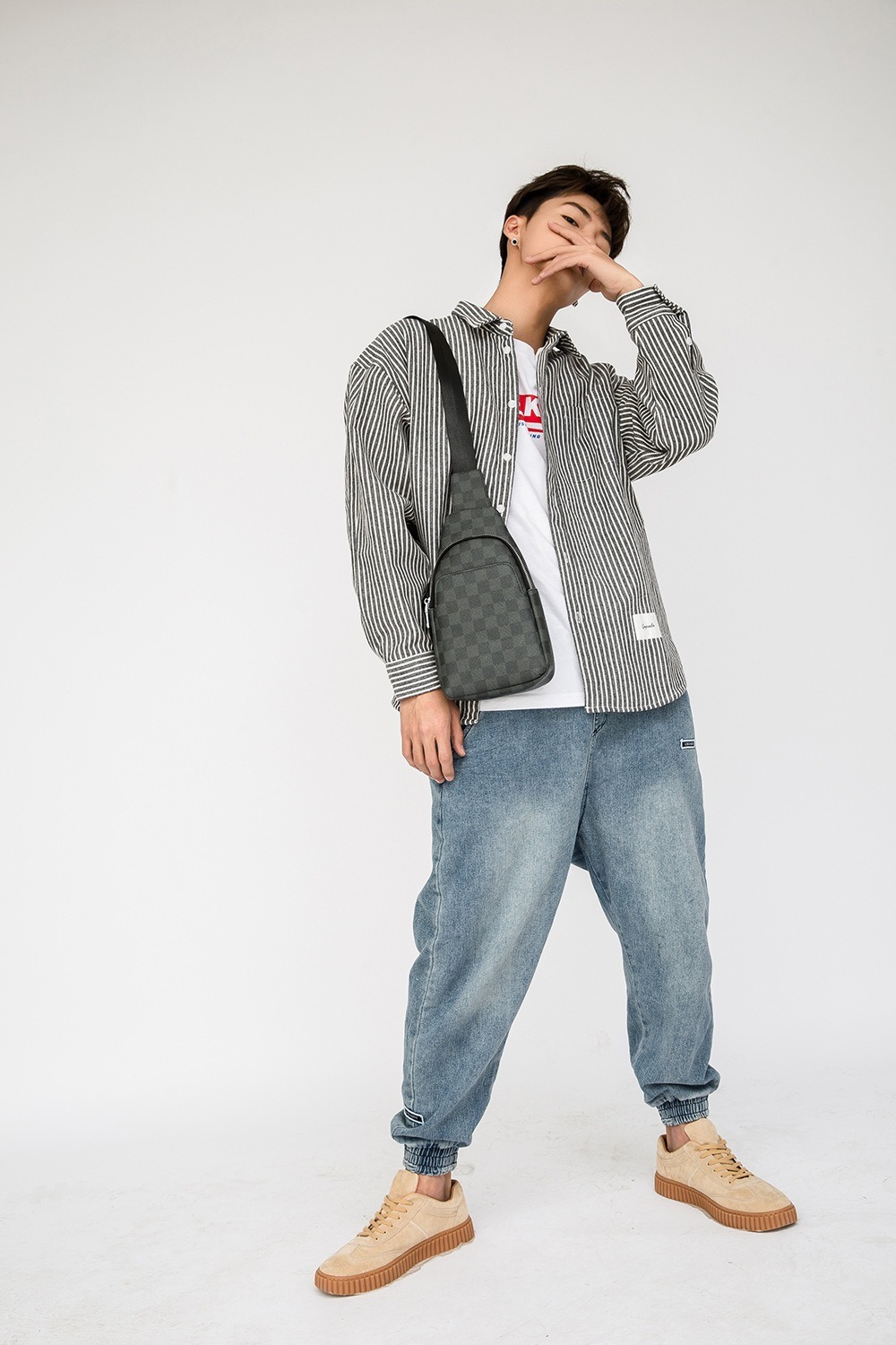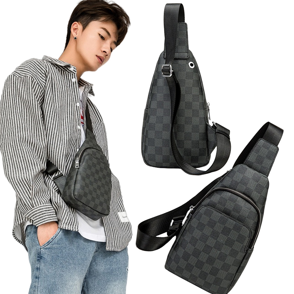 格子包包 棋盤格包包 胸包 男生包包 側背包男 單肩包 斜背包 多功能包 男生禮物 機能包包 貼身包包 隨身小包 222