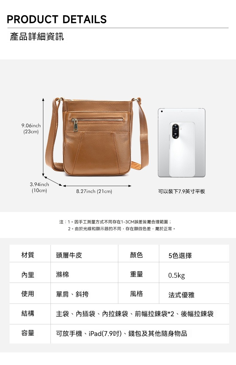 👜容量:可放手機、iPad(7.9吋)、錢包及其他隨身物品