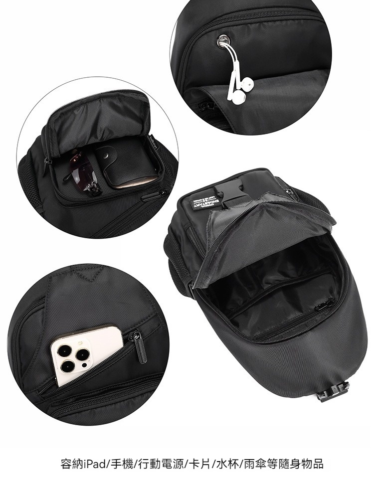 👜結構:主袋、內貼袋、拉鍊內貼袋、前幅副袋、前幅拉鍊貼袋、前置拉鍊袋、兩側插袋、後幅拉練貼袋