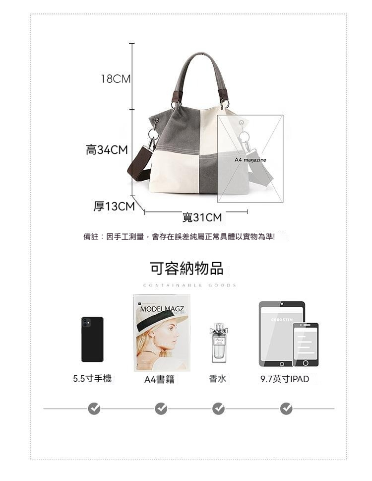撞色包 大容量包包 單肩女包 休閒包包 女生包包 包包 帆布包 斜背包女 手提包 收納包 百搭包包 時尚包包 313