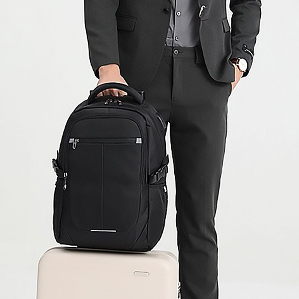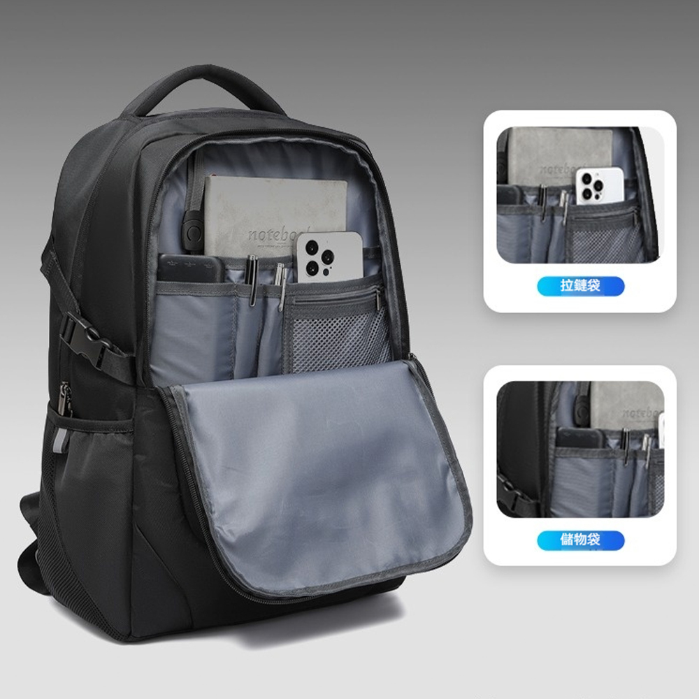 👜結構:主袋、緩衝袋、拉鍊內貼袋、副袋、內貼袋*3、內貼網袋、筆插*2、前幅拉鍊貼袋、兩側插袋、後幅拉練貼袋、行李桿差帶