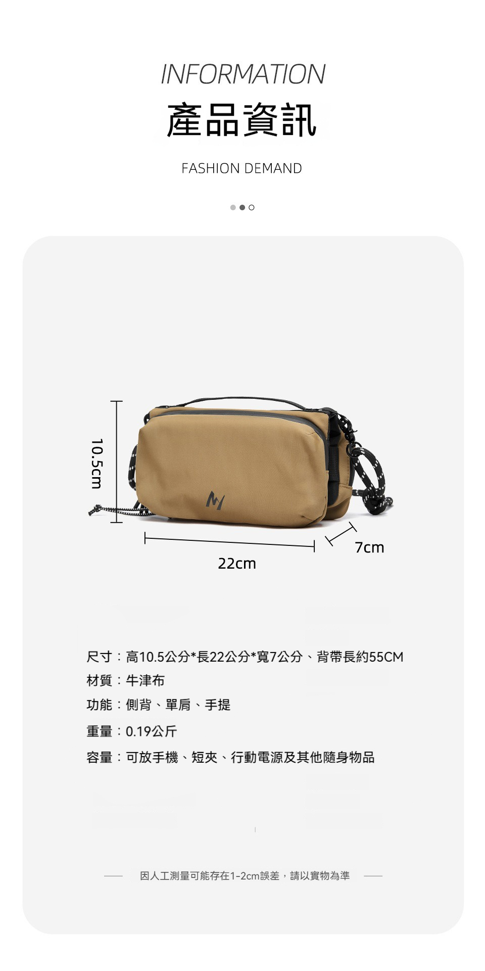 👜容量:可放手機、短夾、行動電源及其他隨身物品