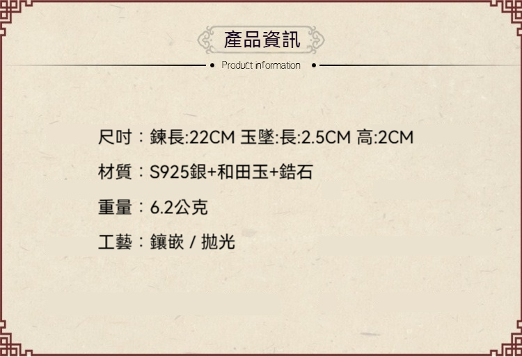 ✨ 商品尺吋:鍊長:22CM 玉墜:長:2.5CM 高:2CM