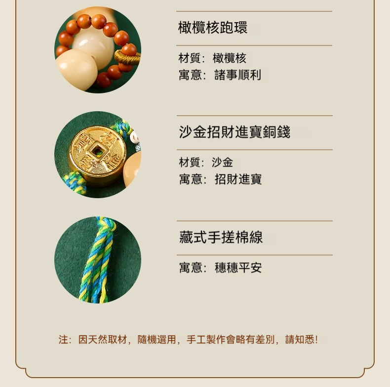 ✨ 材質:菩提、沙金、橄欖核、桃木、菩提根、竹