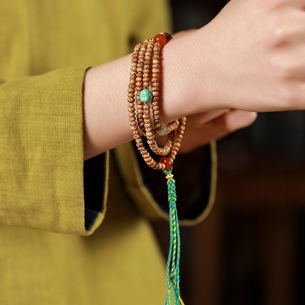 ✨ 材質:黃籽星月菩提、南紅瑪瑙配珠、和田玉轉運珠