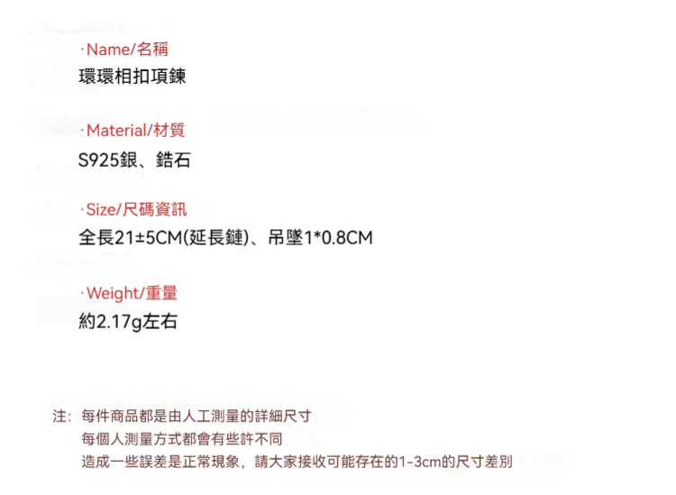 ✨ 商品尺吋:全長21+5CM(延長鏈)、吊墜1*0.8CM