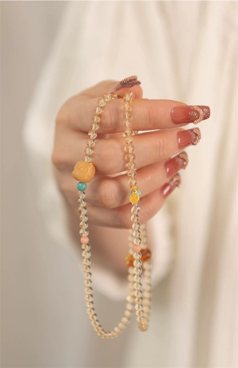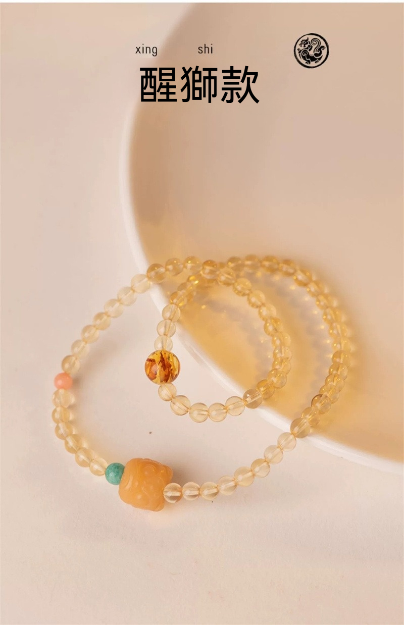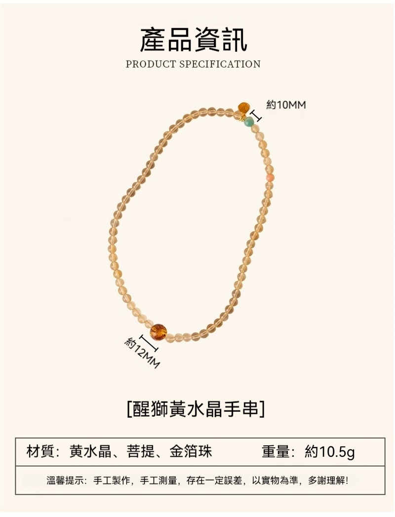 飾品 手鍊 手串 女生手鍊 水晶手鍊 醒獅 串珠手鍊 菩提手串 天然黃水晶 情侶手鍊 民族風 新中式 能量水晶 566