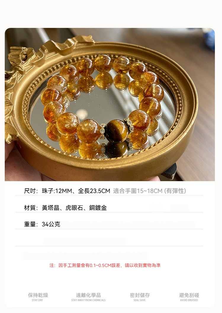 ✨ 材質:黃塔晶、虎眼石、銅鍍金