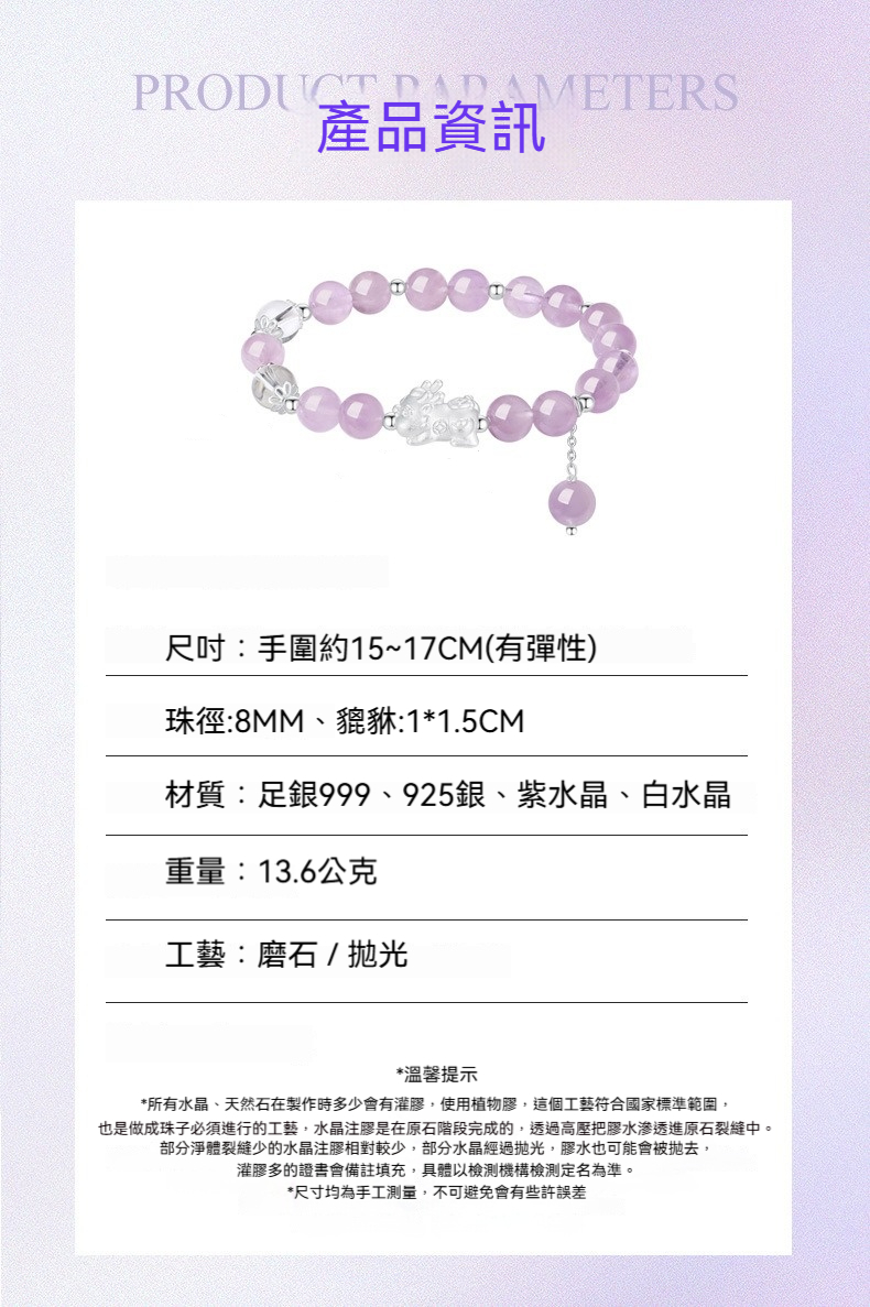 ✨ 材質:足銀999、925銀、紫水晶、白水晶
