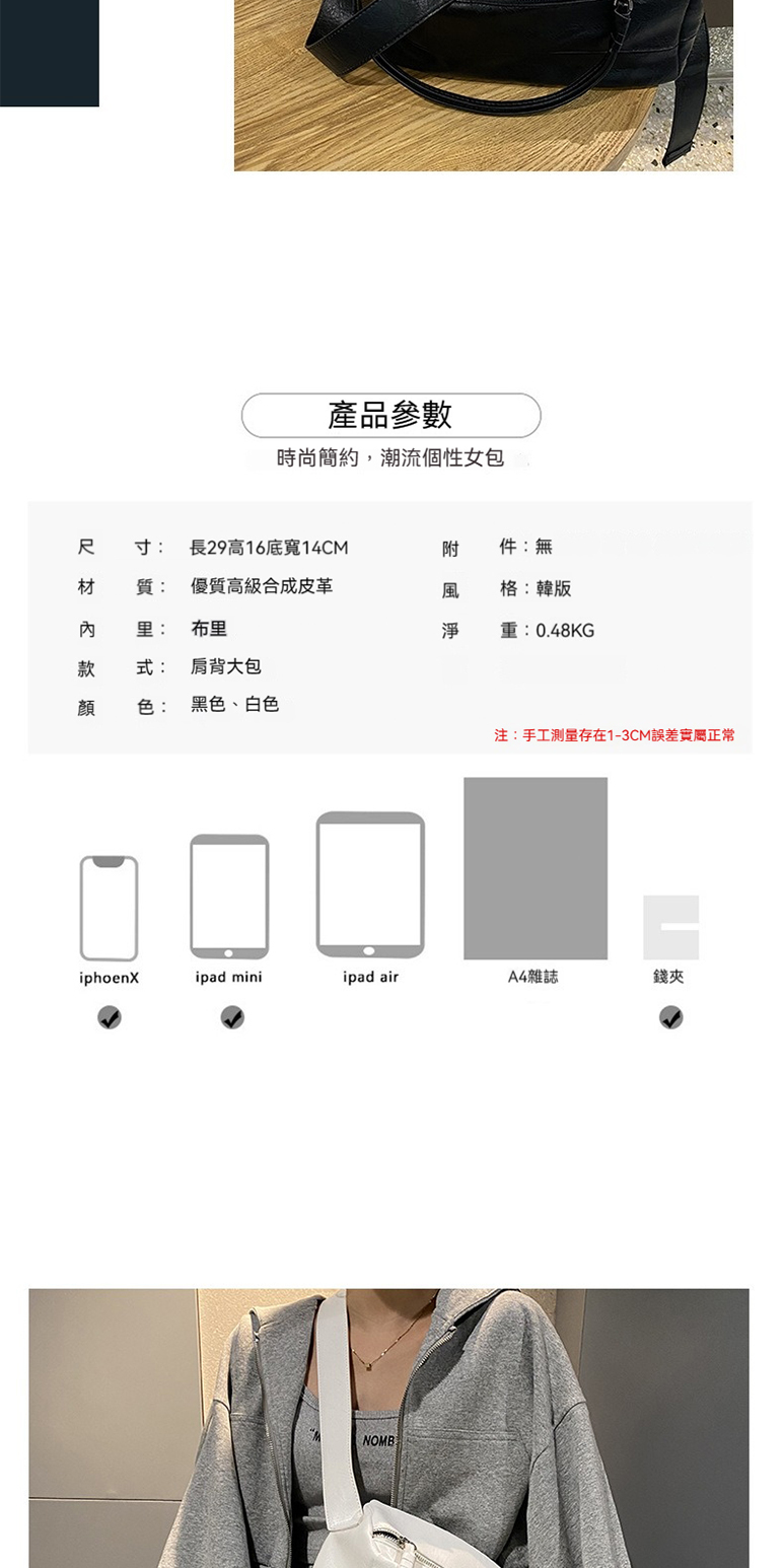 👜容量:無法放A4,可放iPad mini、長夾及其他隨身物品