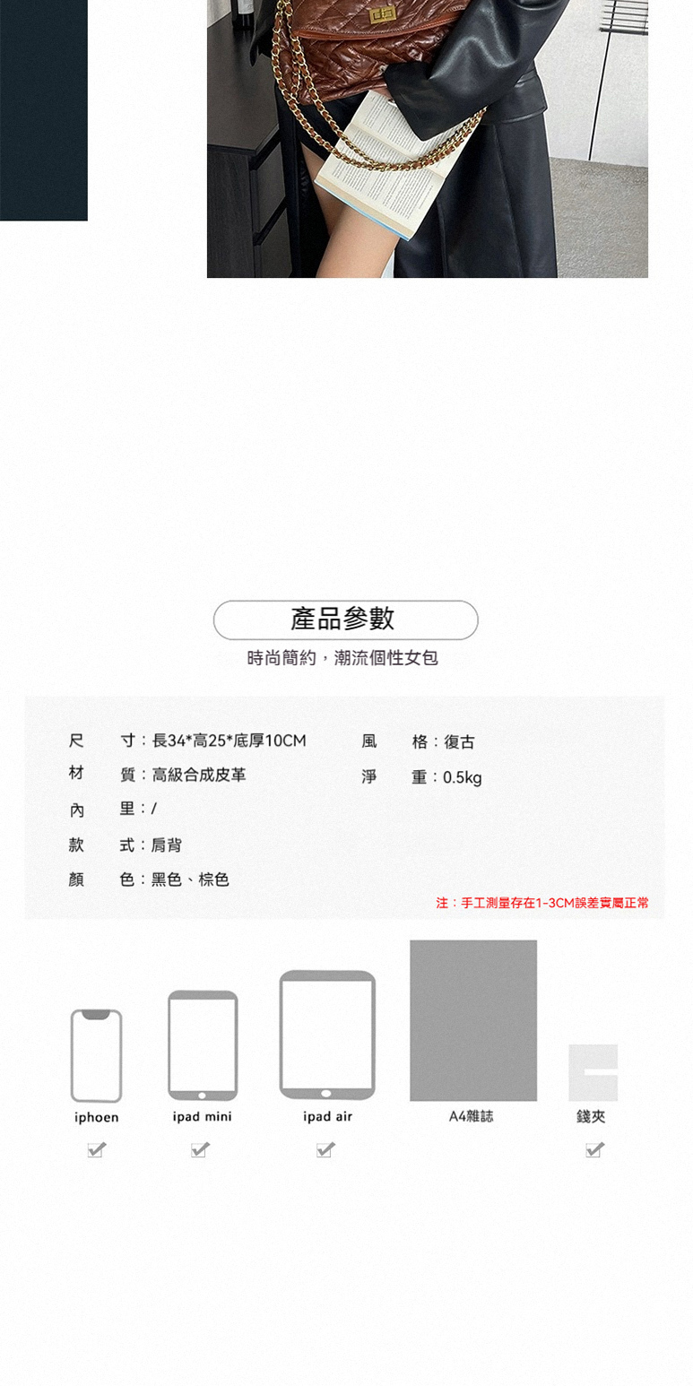👜商品尺吋:高36公分(摺下為25公分)*長34公分*寬10公分*鏈帶36公分