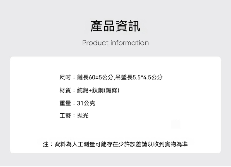 ✨ 商品尺吋:鏈長60+5公分,吊墜長5.5*4.5公分