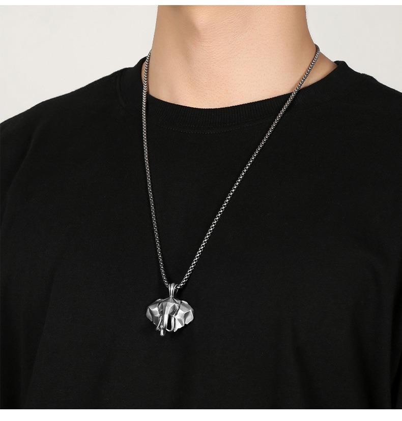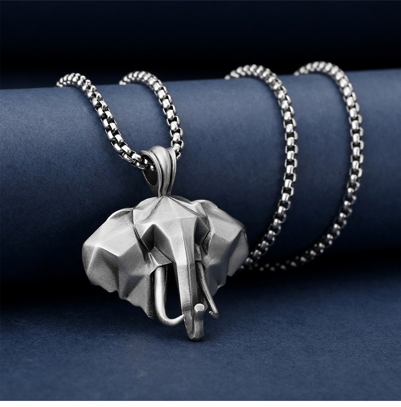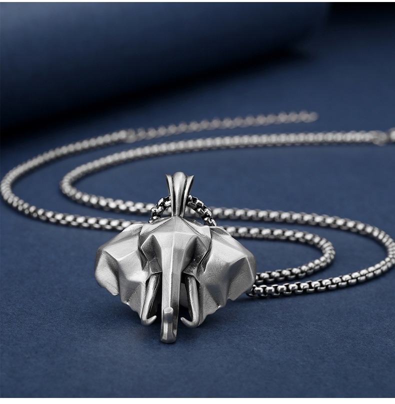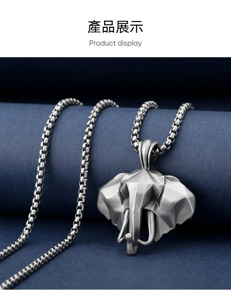大象吊墜 純錫項鍊 復古配飾 項鍊男 動物吊墜 鈦鋼鏈 飾品 627