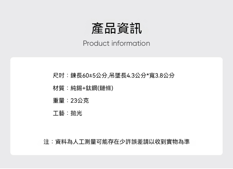 ✨ 材質:純錫+鈦鋼(鏈條)
