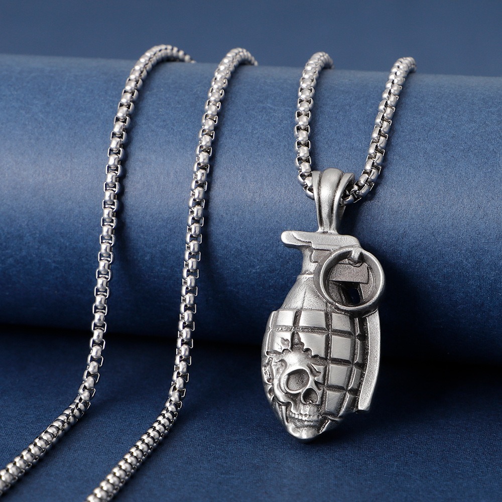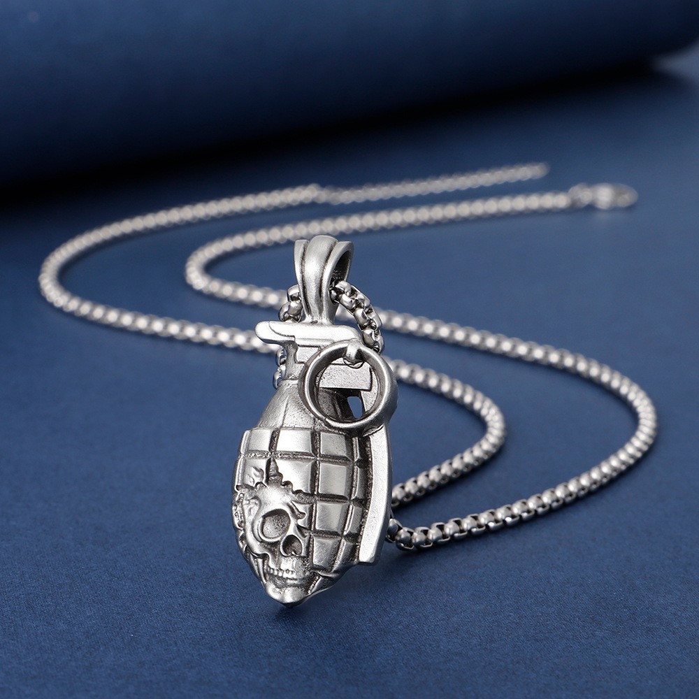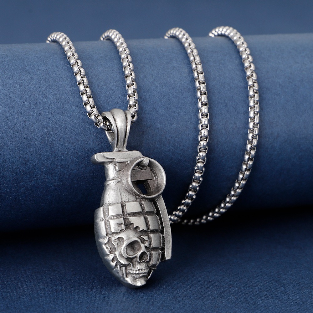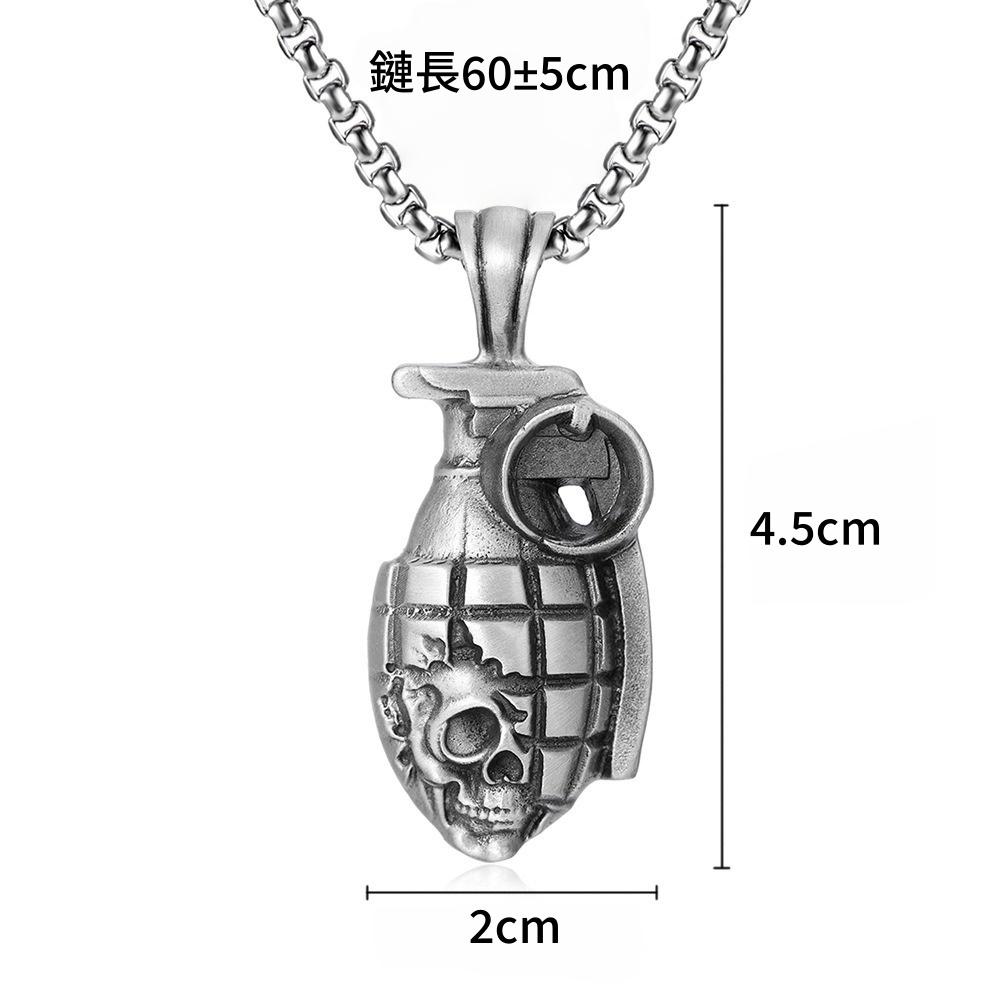 嘻哈項鍊 手榴彈吊墜 骷髏頭手榴彈 項鍊男 吊墜項鍊 飾品 629