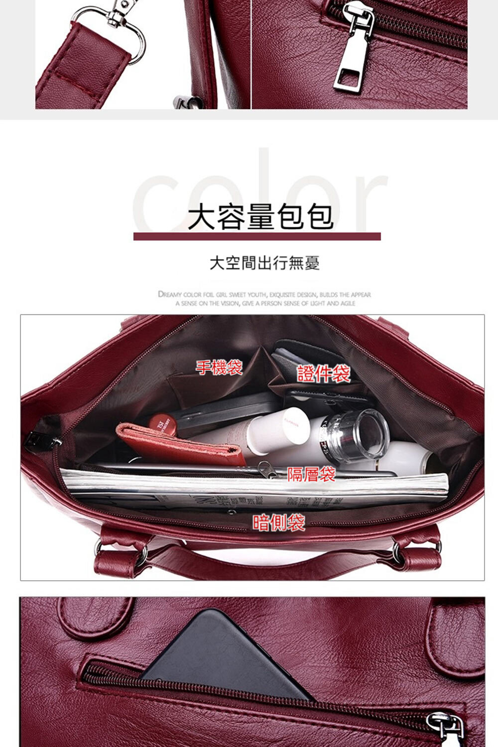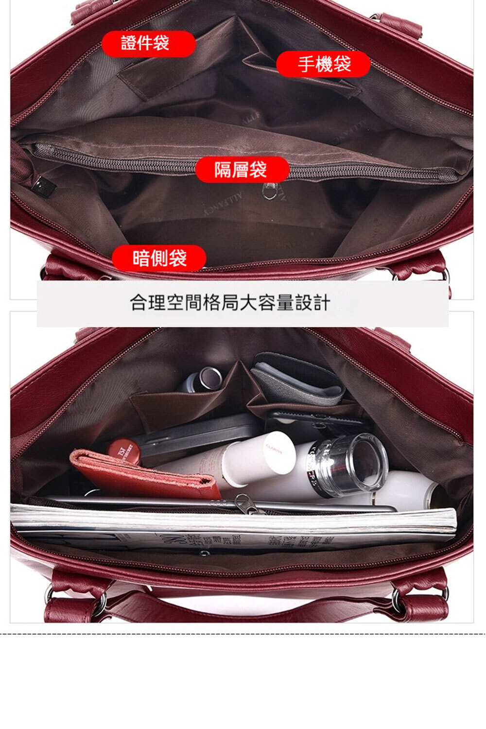 👜結構:主袋、內貼袋*2、拉鍊內貼袋、拉鍊隔層袋、後幅拉練貼袋、子袋