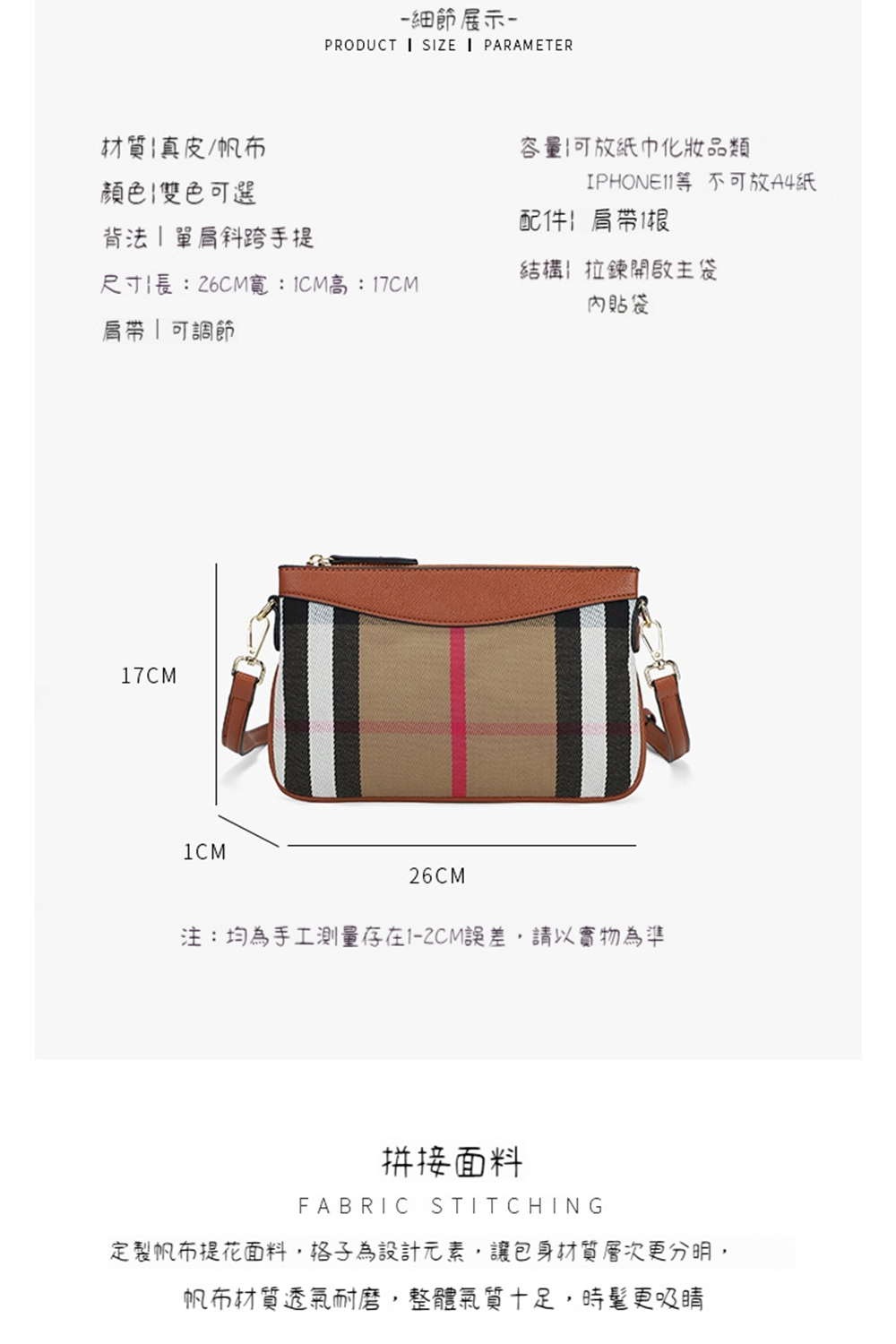 👜商品尺吋:高17公分*長26公分*寬1公分