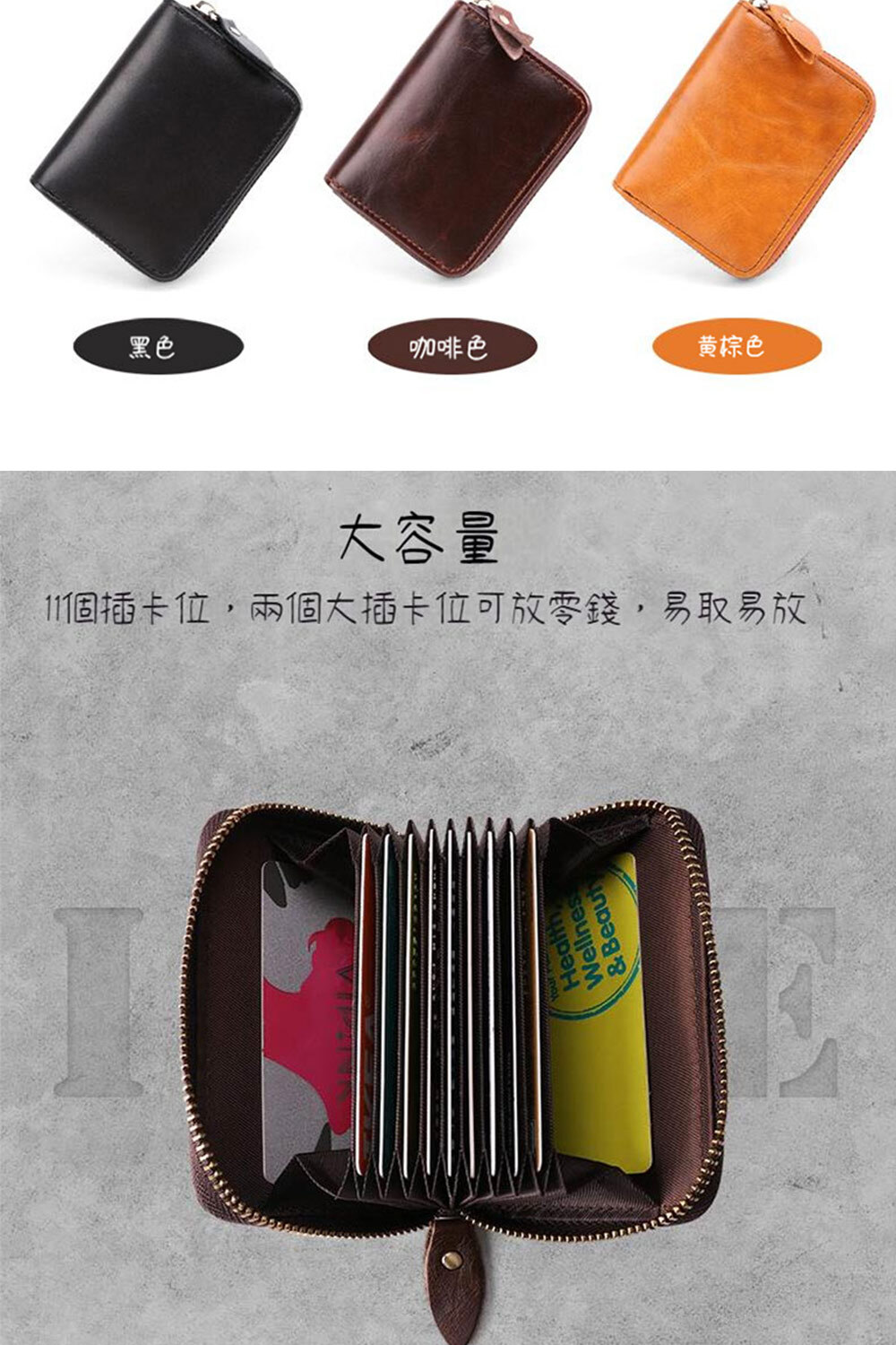 👜結構:外面有二個卡位. 內部9個插卡位. 2個卡位可以放零錢跟紙鈔