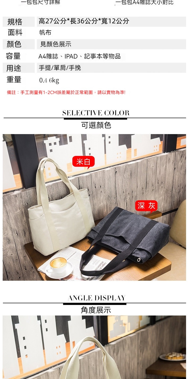 👜容量:可放A4、iPad、長夾及其他隨身物品