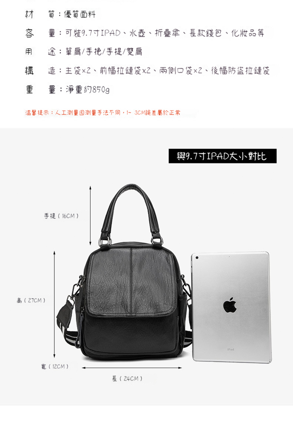 👜容量:可放9.7吋iPad、長夾及其他隨身物品
