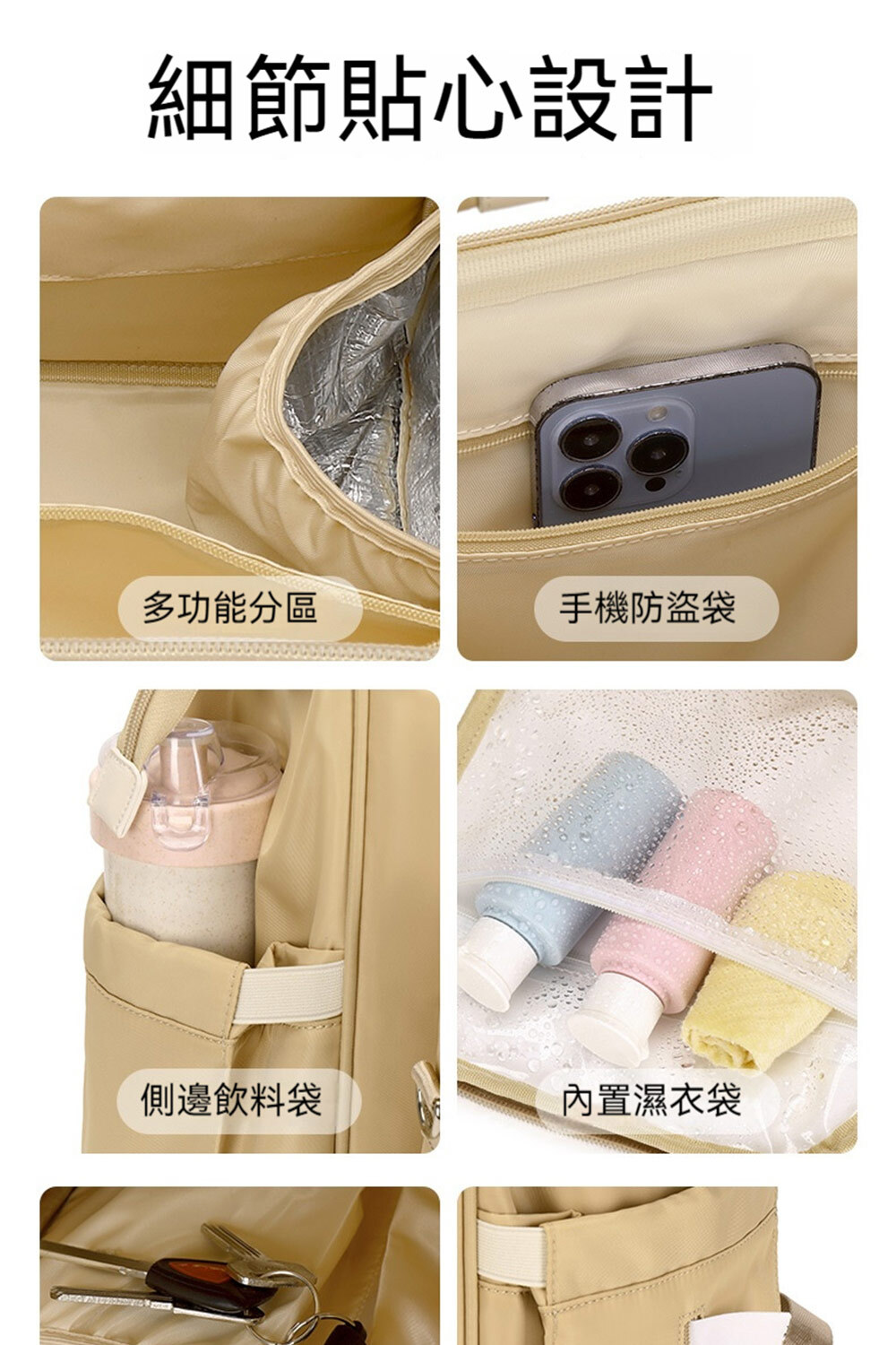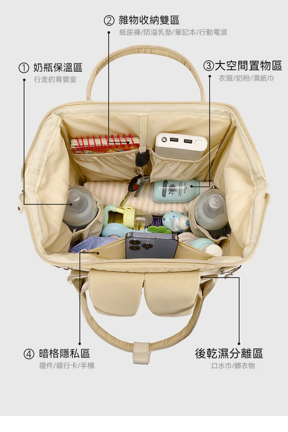 👜結構:主袋、內貼袋*2、內部兩側保溫保冷插袋、內部防水拉鍊袋、拉鍊內貼袋、前幅拉鍊袋、兩側插袋、後幅拉練暗袋子包後幅有拉鍊貼袋
