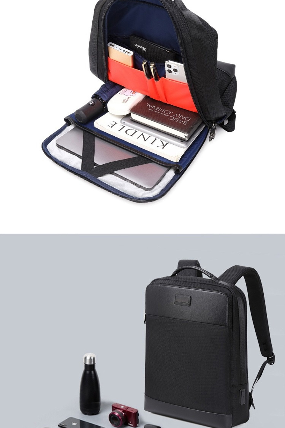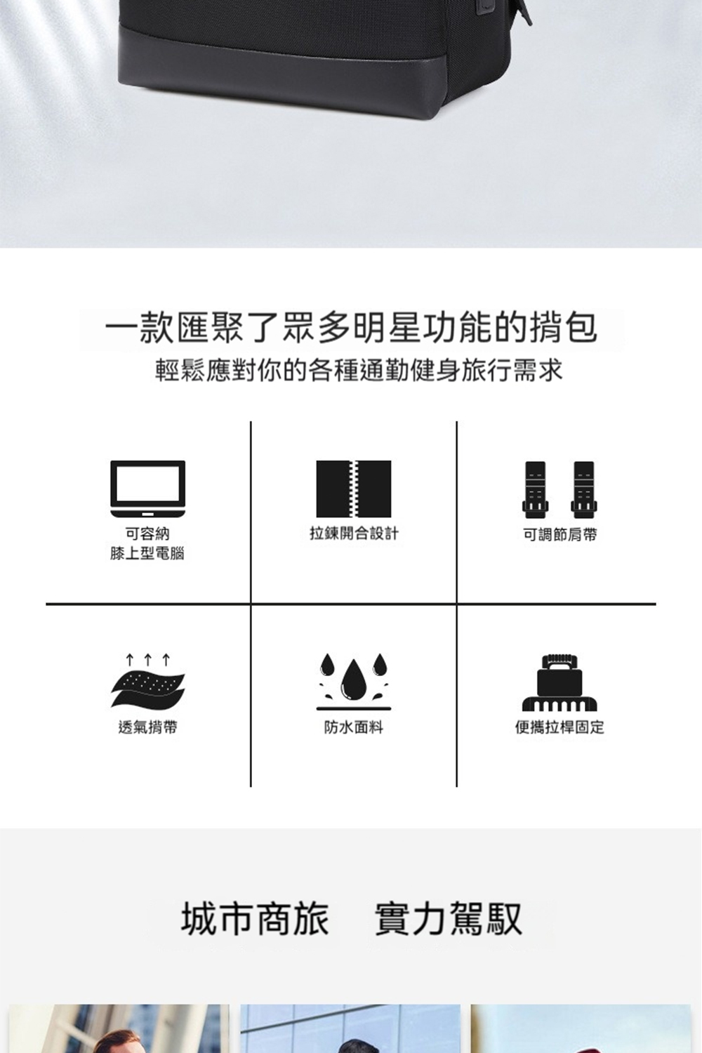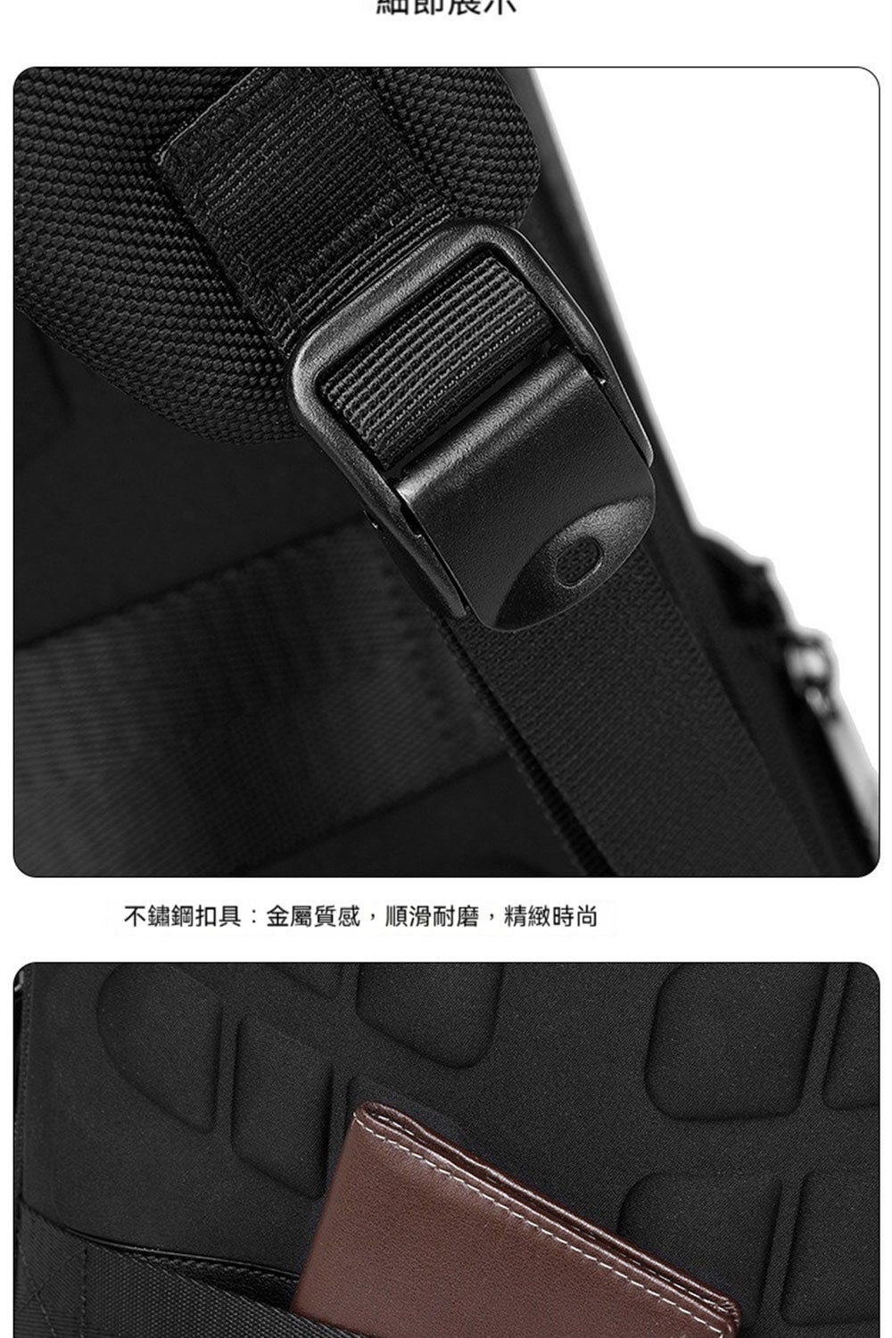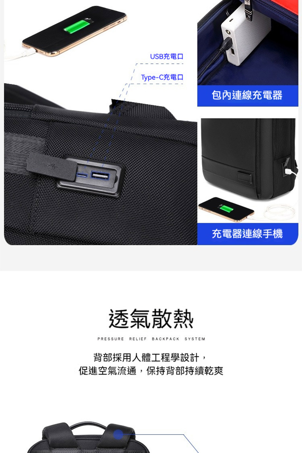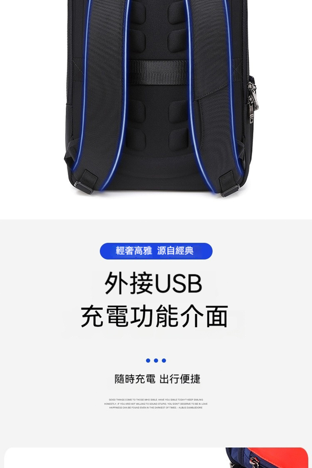 👜結構:15.6吋電腦隔層、前拉鍊袋*1、側袋*1、主袋、內貼袋*2+拉鍊袋*1