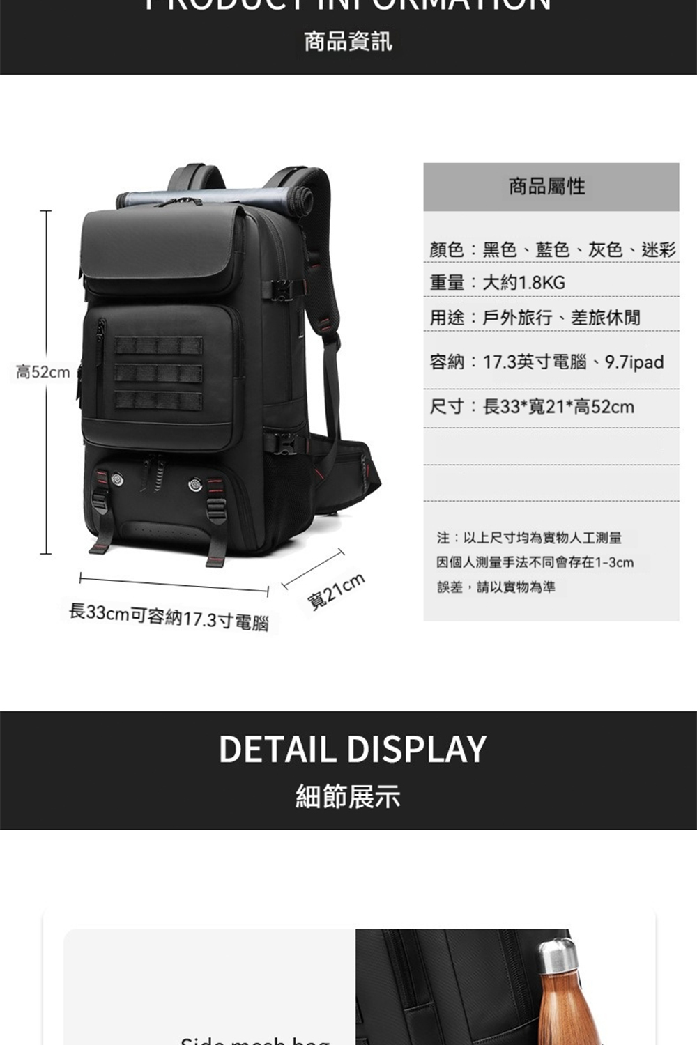 👜容量:可放17吋筆電、A4、iPad、長夾及其他隨身物品