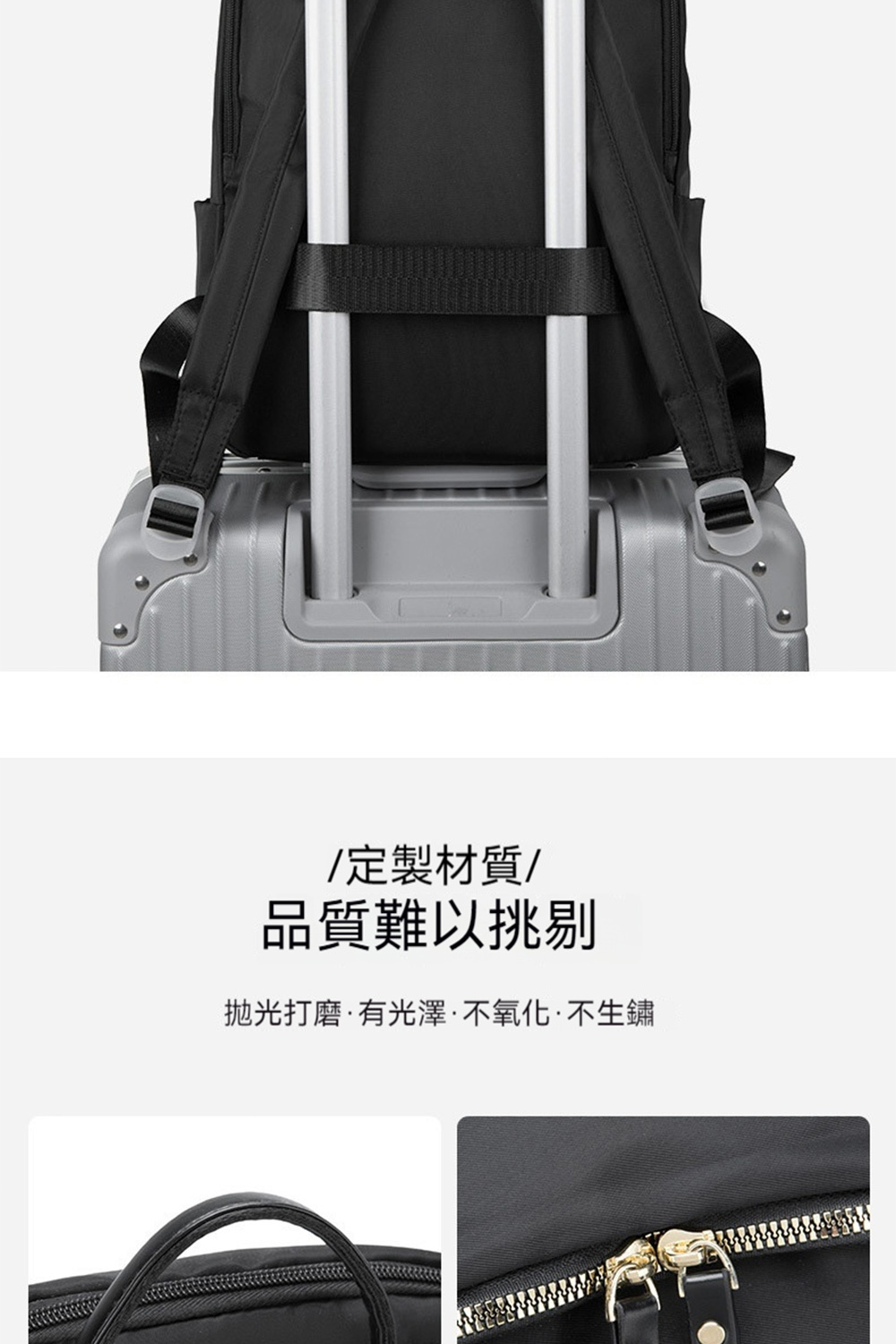 👜結構:主袋、大內貼袋、拉鍊內貼袋、副袋、前幅拉鍊貼袋、後幅拉練貼袋、兩側插袋、行李桿帶