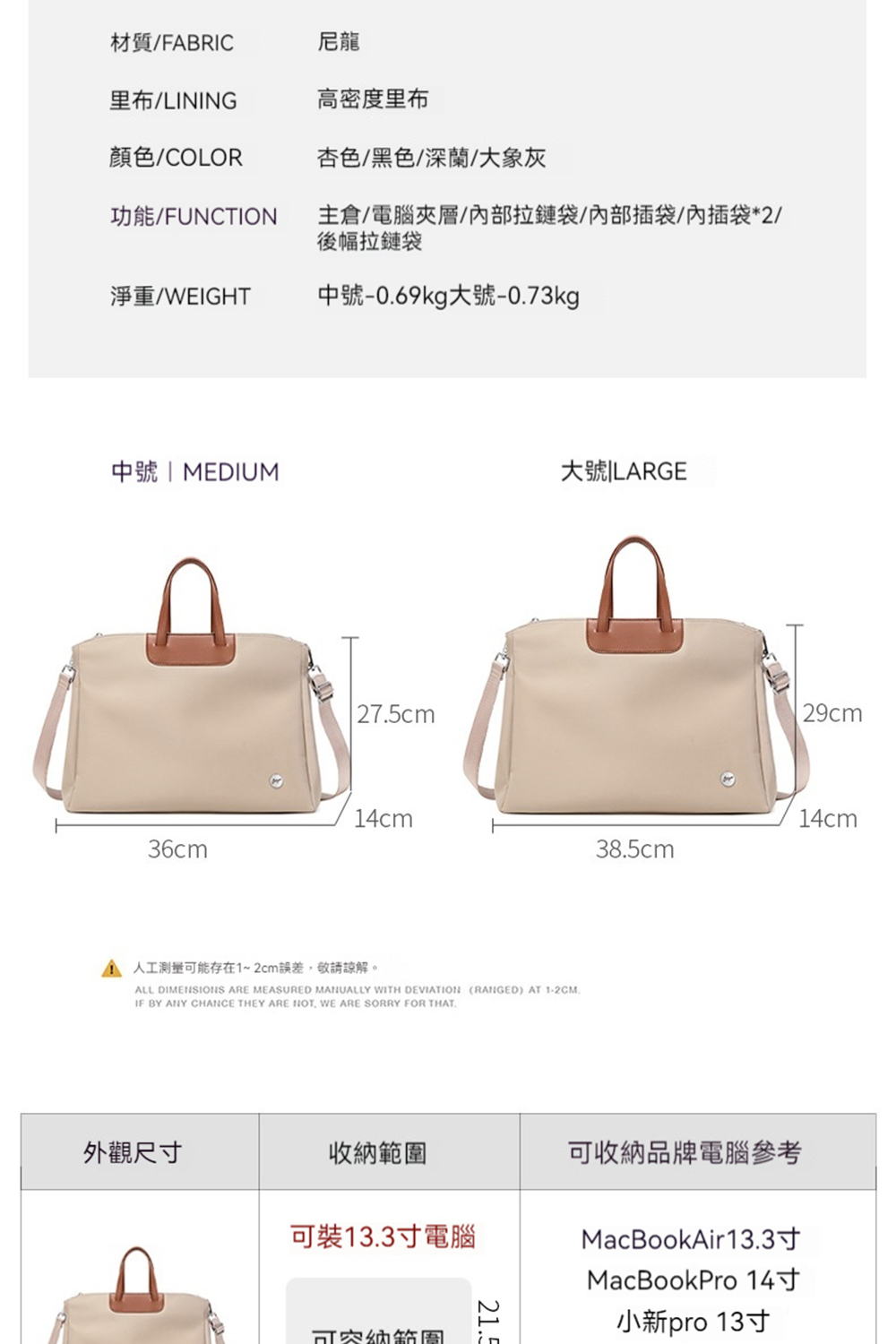 👜容量:可放A4、iPad、長夾及其他隨身物品