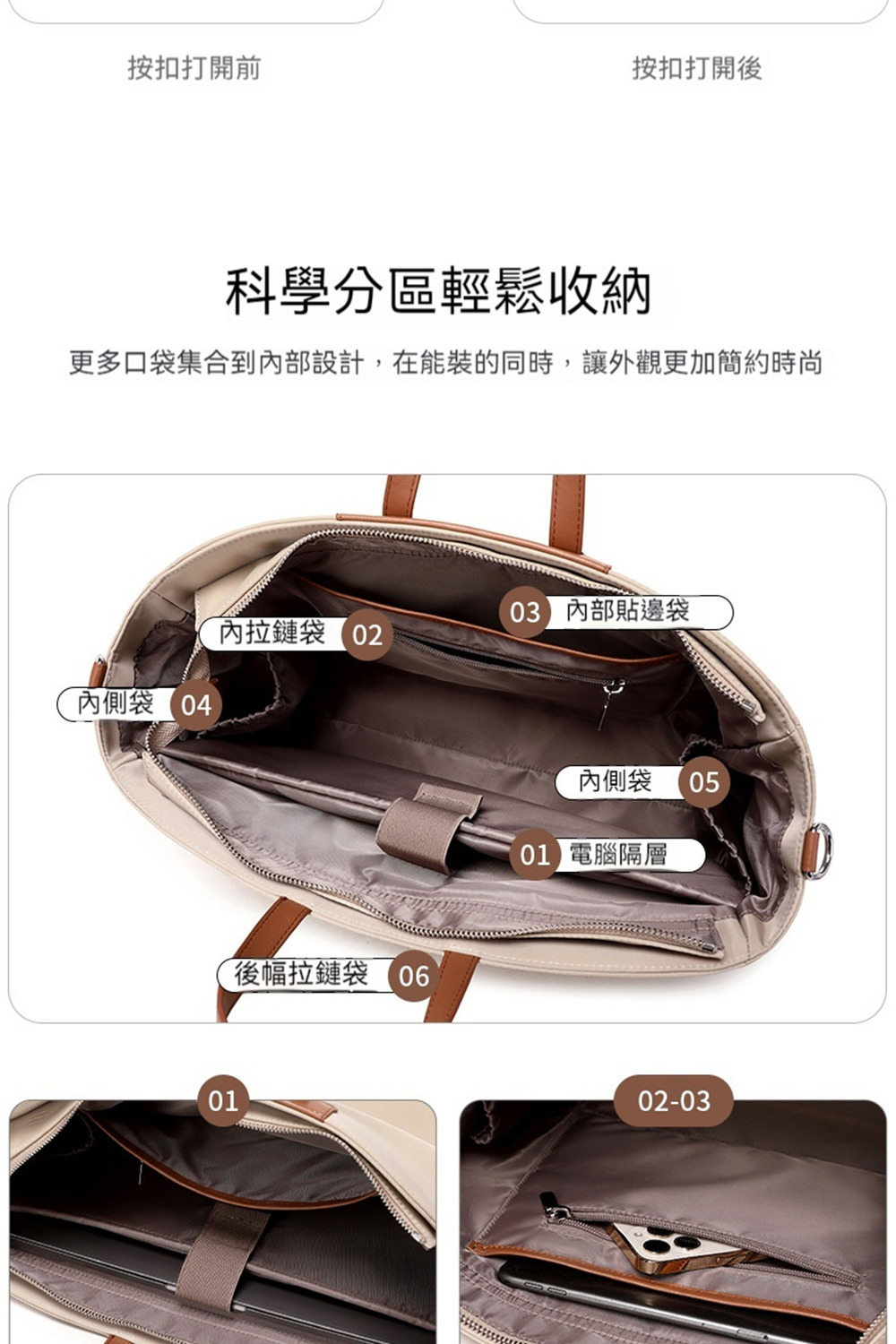 👜結構:主袋、內貼大口袋、拉鍊內貼袋、緩衝層、內部兩側插袋、後貼拉鍊袋